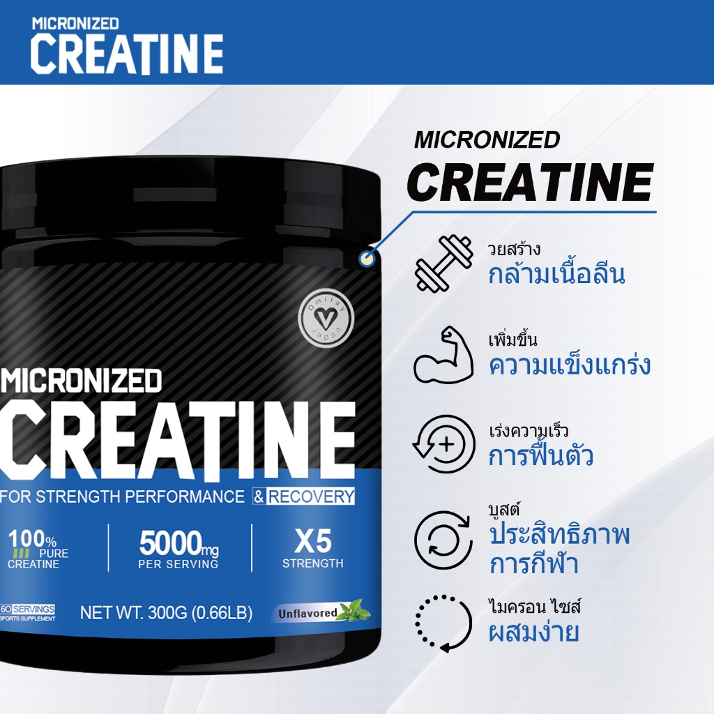 Omilay Creatine ครีเอทีน Creatine Monohydrate Powder Micronized Creatine ผง Weight Training 300 g