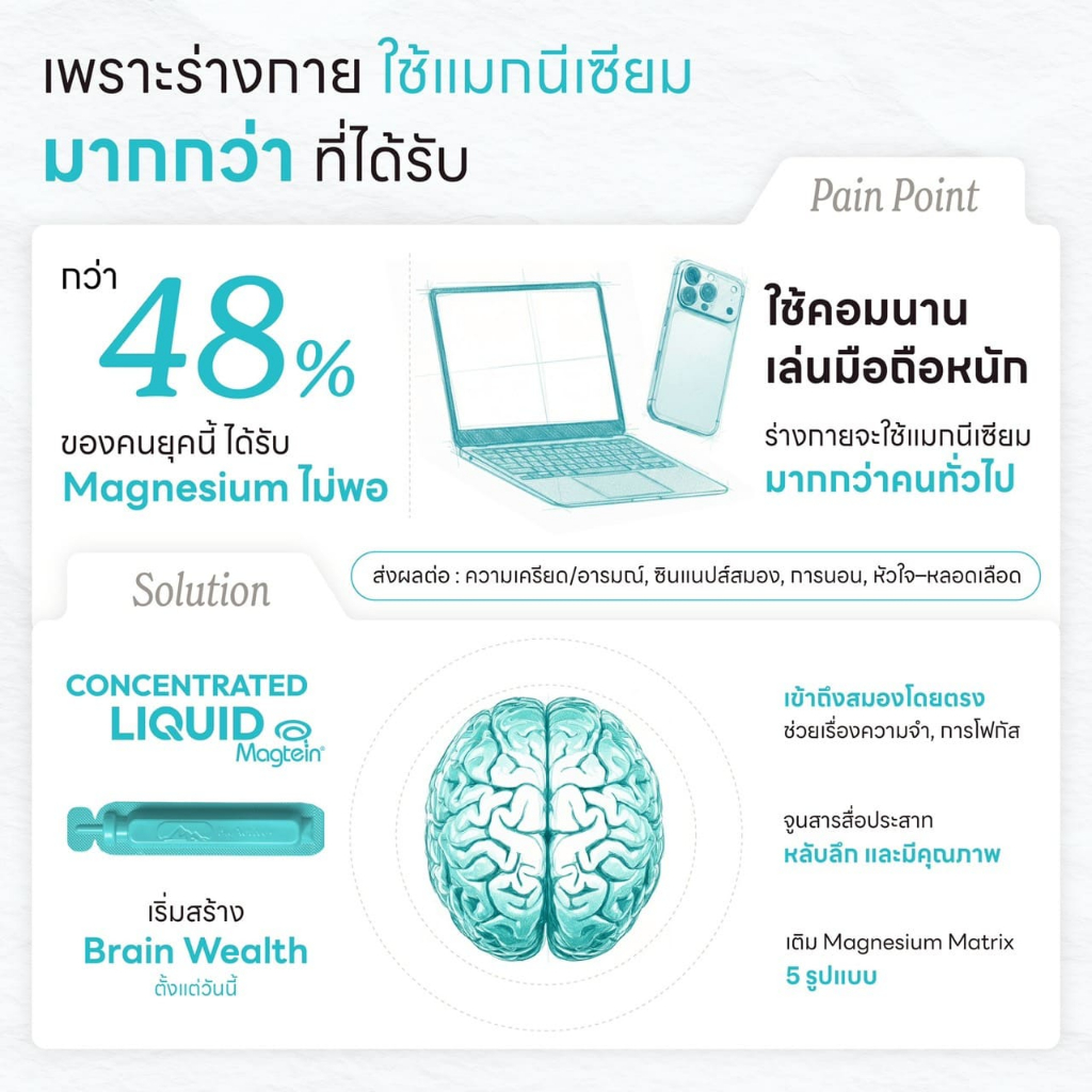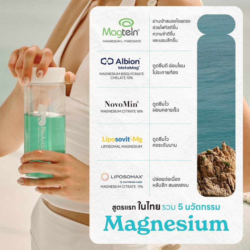 [โปร 3 กล่อง + ส่งฟรี] ไบโอแอคทีฟพลัส BioActive+ Concentrated Liquid Magtein แมกนีเซียม บำรุงสมอง หลับลึก 30 หลอด