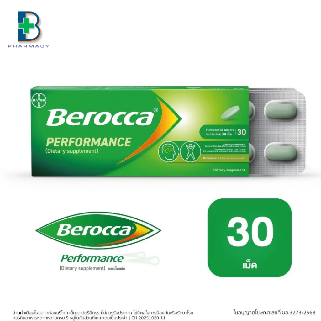 BEROCCA Performance 15s สีส้ม/สีเหลืง(บีรอคคา เพอร์ฟอร์มานซ์ ชนิดเม็ดฟู่ ผลิตภัณฑ์เสริมอาหาร) เม็ดฟู่รสส้ม/รสมะม่วง