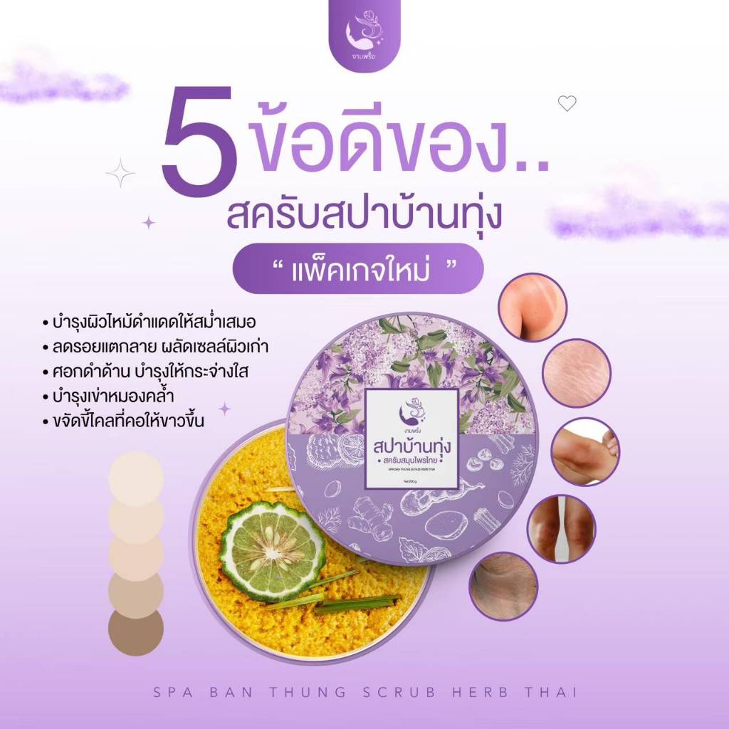 (แพ็คคู่ 2 กระปุก) สครับสปาบ้านทุ่ง สครับสมุนไพรขัดผิวขาว ลดรอยดำ งามพริ้ง รอยแตกลาย ผิวเนียนนุ่ม ขจัดขี้ไคล