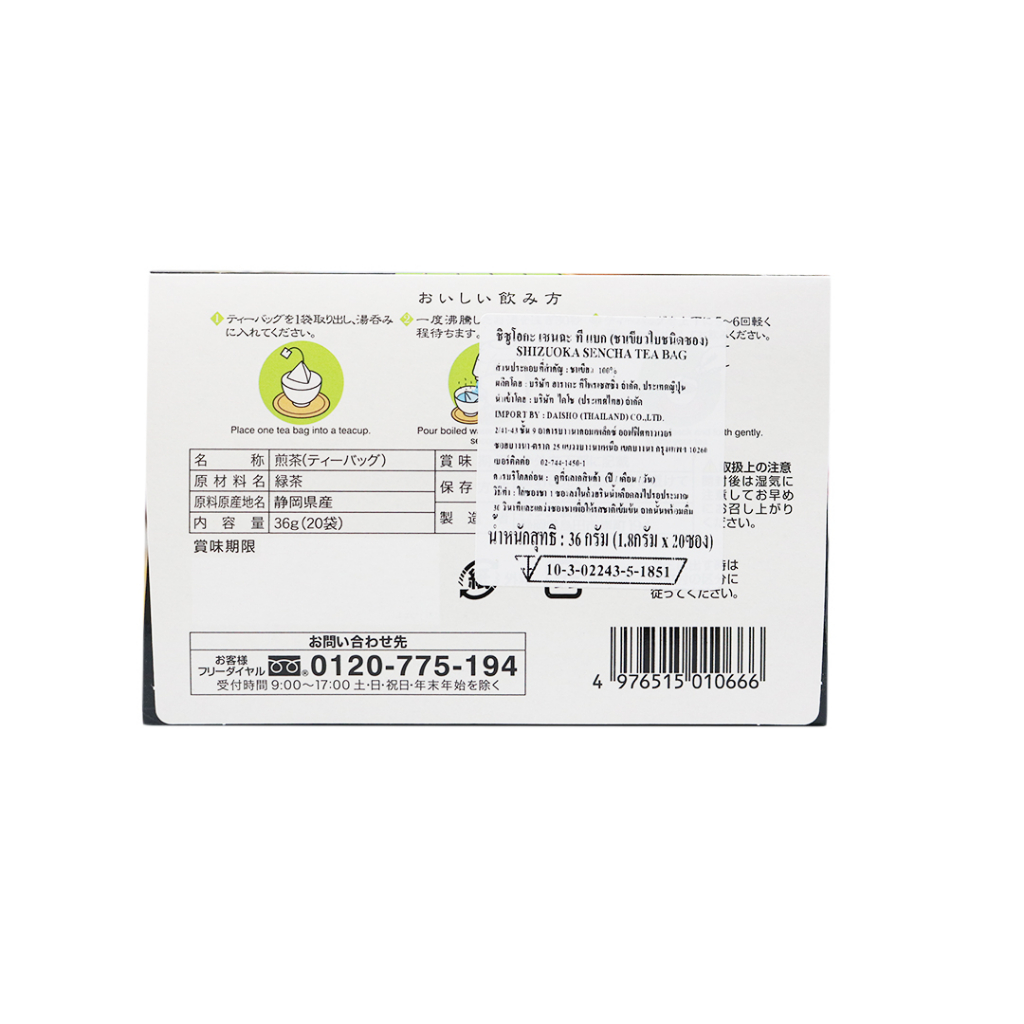 ฮาราดะ ชาเขียวเซนฉะ จากชิซูโอกะ ขนาด 36 กรัม (20 ซอง) Harada Shizuoka Sencha Tea Bag
