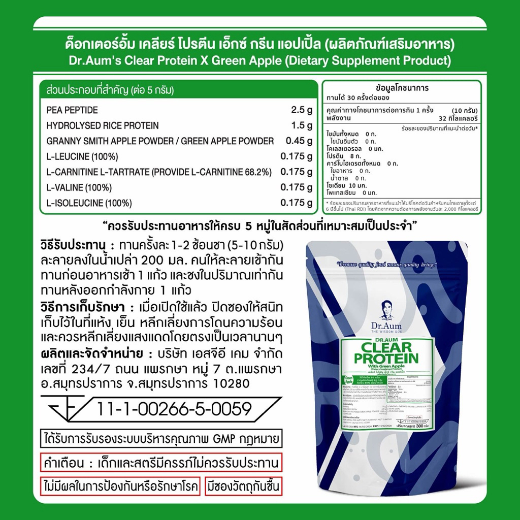 Dr.Aum Clear Protein ด็อกเตอร์อั้ม โปรตีนใสขนาด 300 g (เลือกได้ 2 รสชาติ แอปเปิ้ลเขียว และ เบอร์รี่)