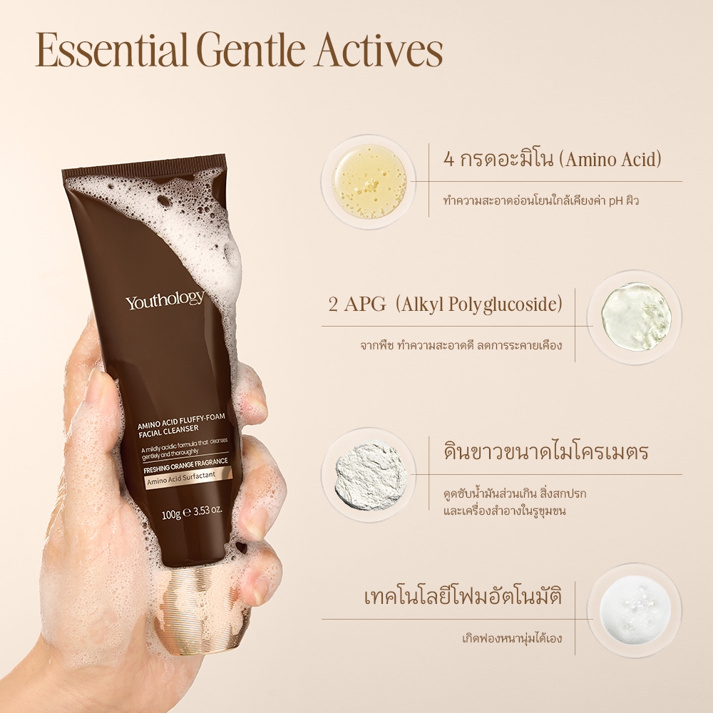 Youthology โฟมล้างหน้ากรดอะมิโน 100g เหมาะสำหรับผิวมัน เนื้อบางเบา สบายผิว ไม่อุดตันรูขุมขน