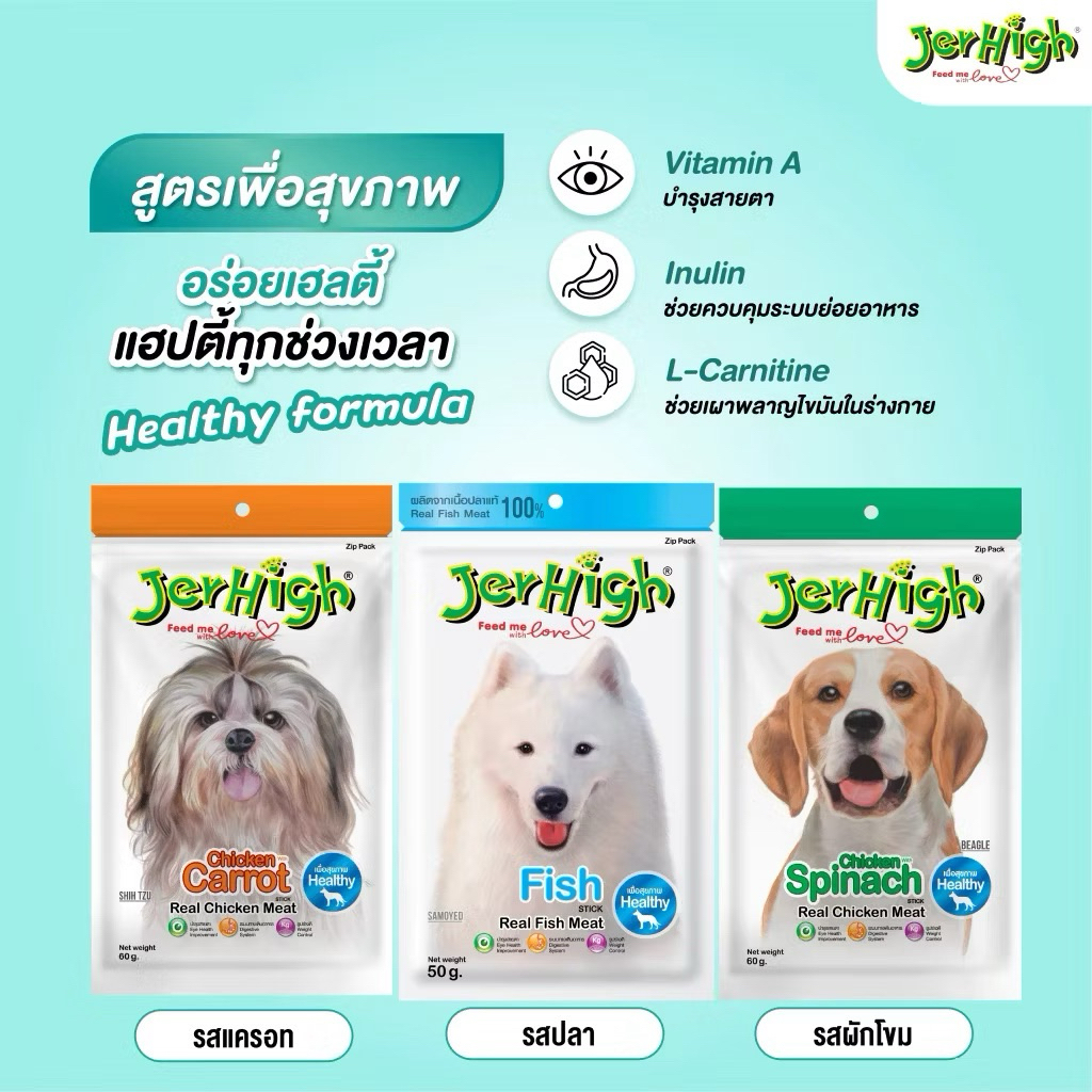 [ยกโหล 12 ชิ้น] JerHigh Stick เจอร์ไฮ สติ๊ก ขนมสุนัข ขนาด 60 กรัม โปรตีนสูง ผลิตจากเนื้อไก่แท้