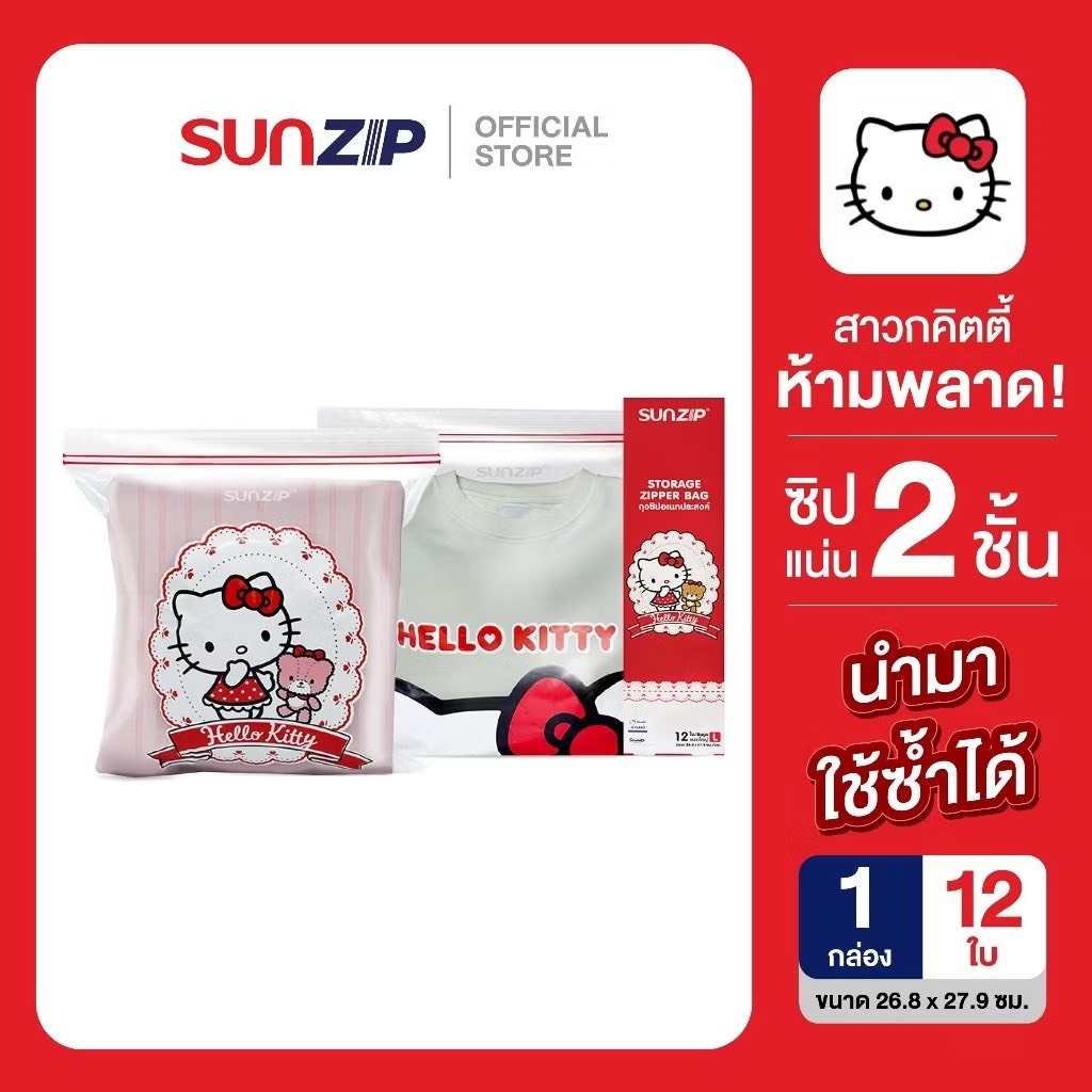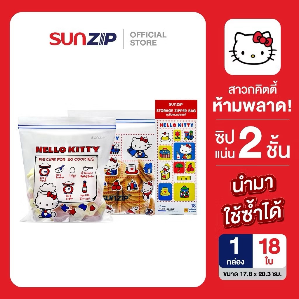 Sunzip ถุงซิปล็อค 2 ชั้นลาย kitty มี2ไซส์ 2 ลายในกล่องเดียว