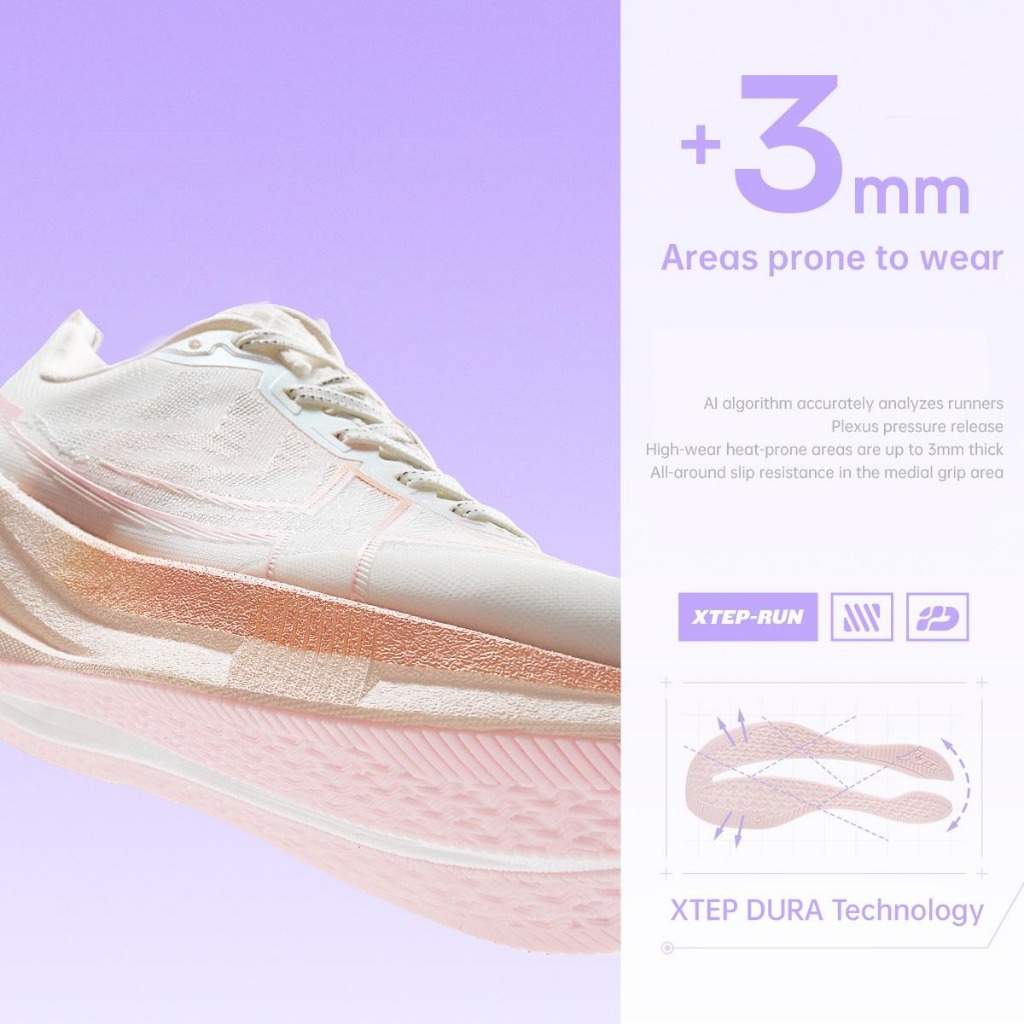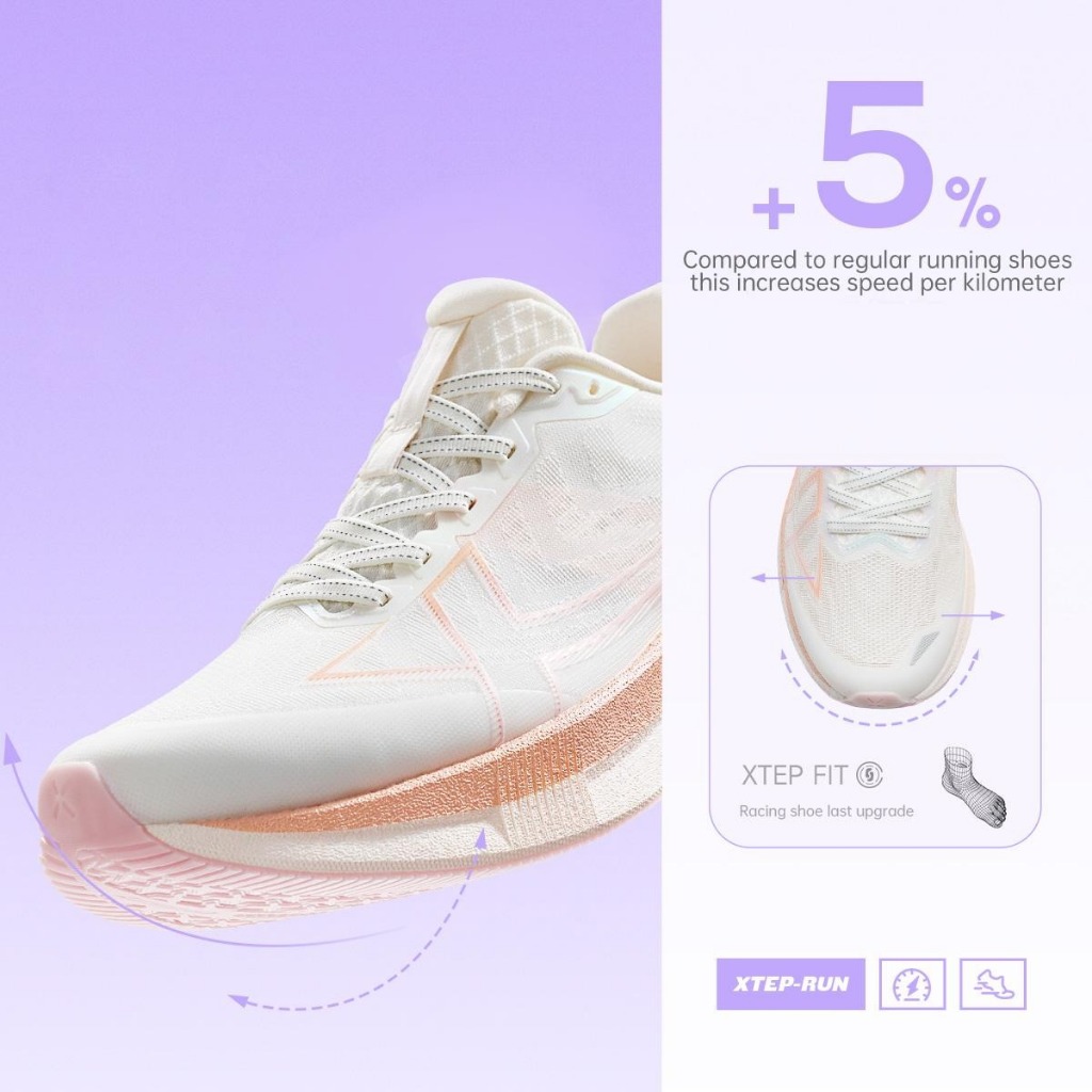 XTEP 2000KM 5.0 รองเท้ากีฬาสำหรับผู้หญิง ที่ดูดซับแรงกระแทก ทนทานต่อการสึกหรอ และสวมใส่สบาย
