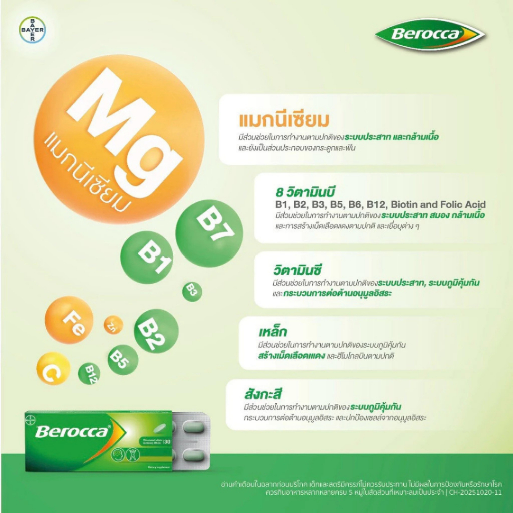 Berocca performance แบบเม็ดกลืน 30 เม็ด บีรอคคา #13122