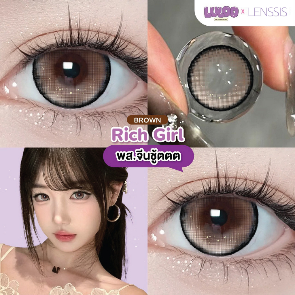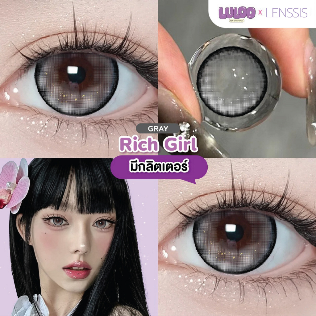 [ของแท้] คอนแทคเลนส์รายเดือน LULOO รุ่น Rich Girl ตาแบบสาวโต่วอิน มีกลิตเตอร์