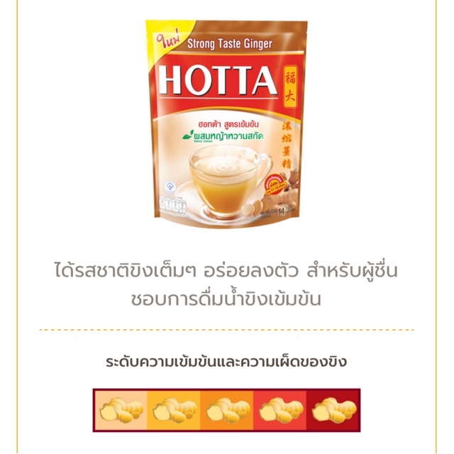 Hotta ฮอทต้า ขิงเข้มข้น ผสมหญ้าหวานสกัด 14 ซอง (น้ำตาล)