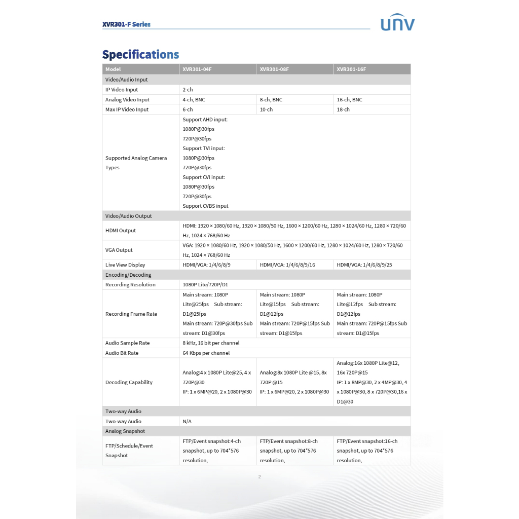 Uniview UNV XVR301-F Series XVR301-04F/ XVR301-08F/ XVR301-16F เครื่องบันทึกกล้อง CCTV DVR 4/8/16 ช่อง
