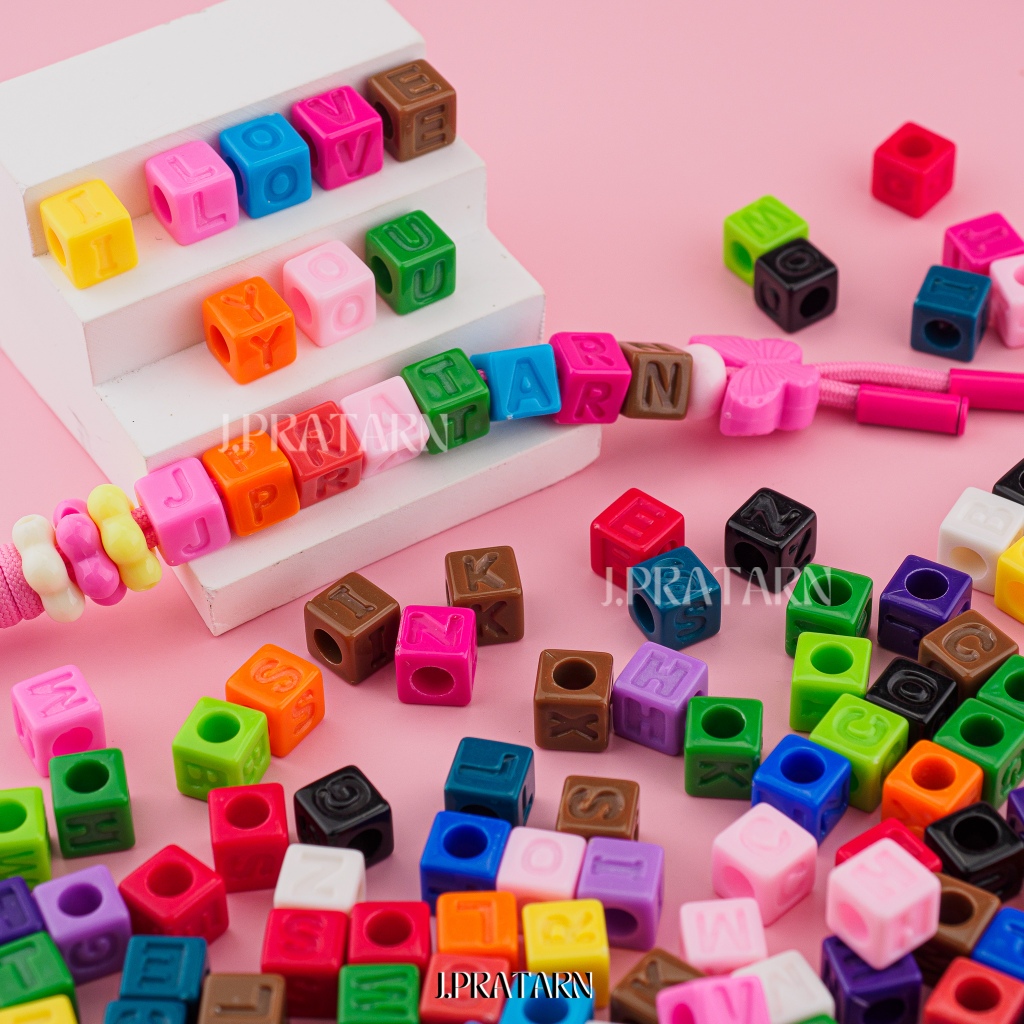 ส่งด่วน ส่งไว ลูกปัดเต๋าอักษร ABC คละอักษร รูร้อย7มม ร้อยเชือก พวงกุญแจ งานประดิษฐ์ D.I.Y อะคริลิค