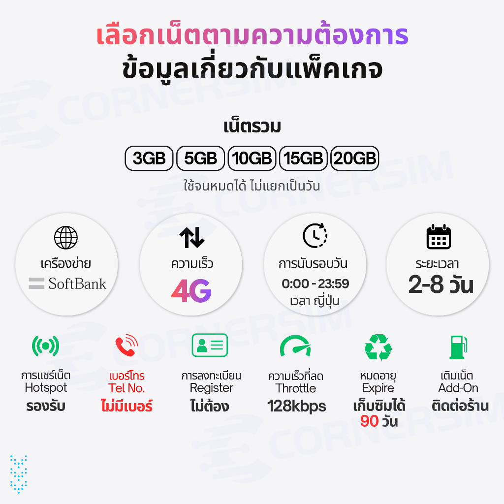 eSIM Japan อีซิมญี่ปุ่น Softbank 4G เน็ตไม่อั้น เต็มสปีดวันละ 1GB/2GB/3GB ใช้งาน 2-8 days
