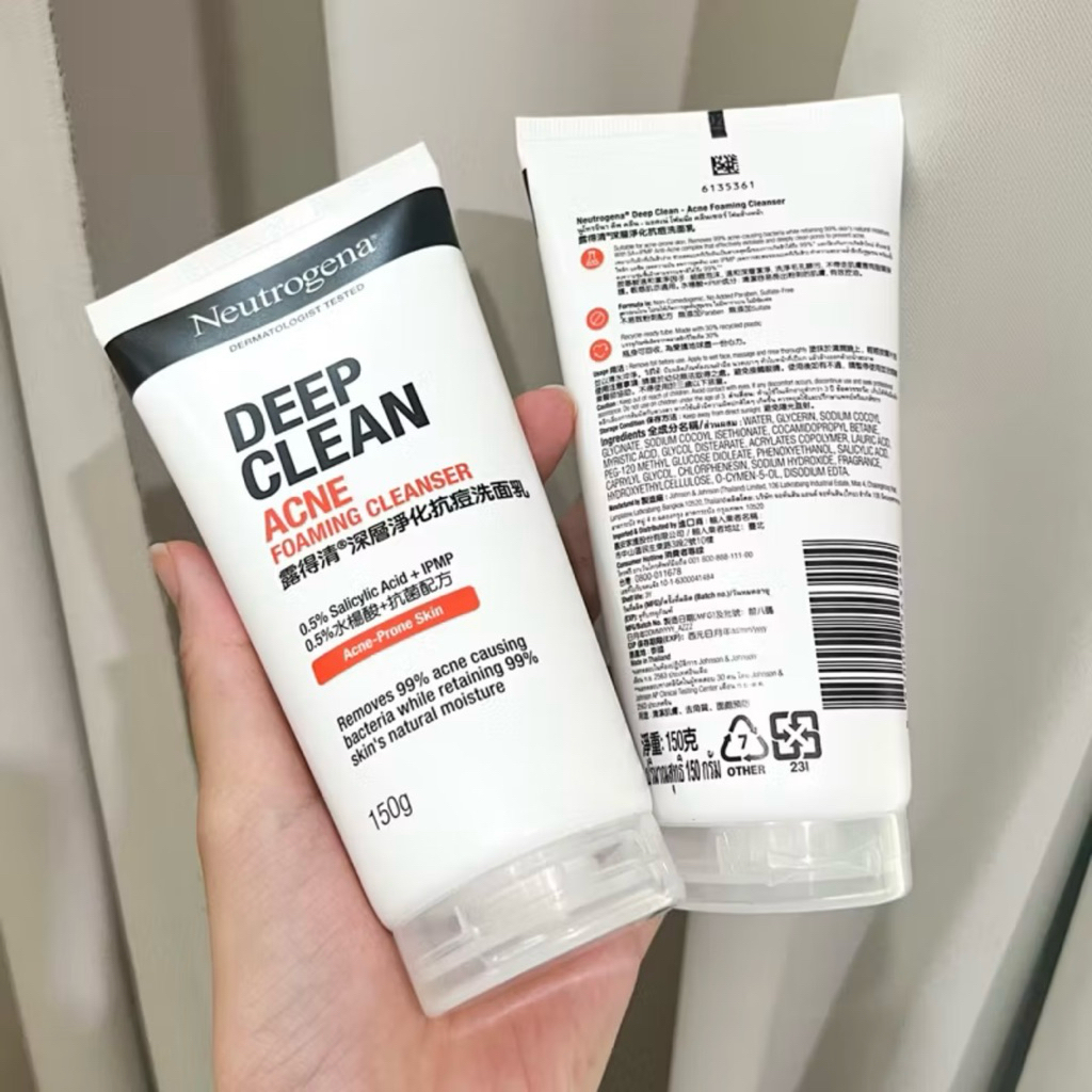 Neutrogena Deep Clean โฟมล้างหน้าสำหรับคนเป็นสิว 150g นูโทรจิน่า ลดมันสิวอุดตัน