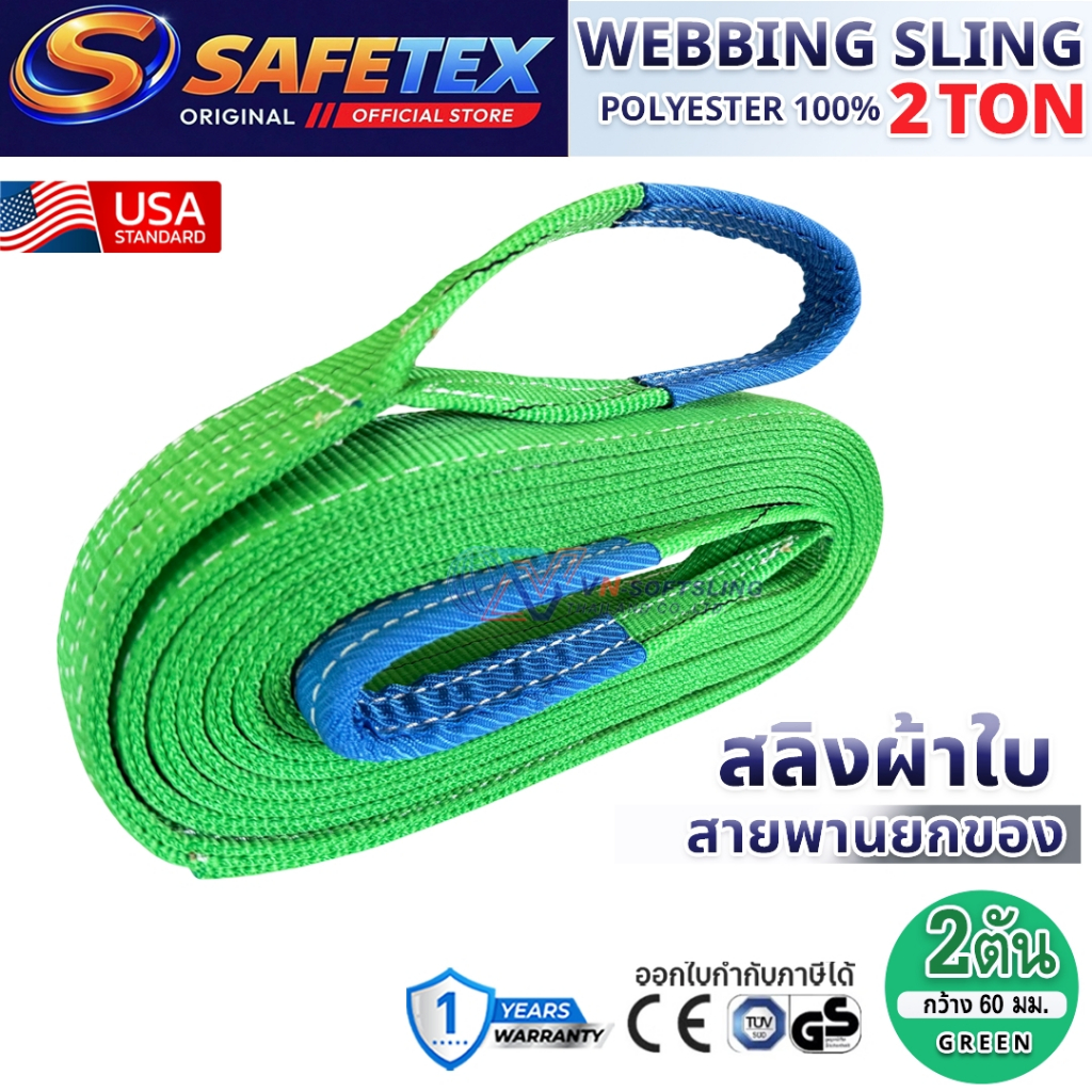 สายพานยกของ ขนาด 2 ตัน SAFETEX USA (SF 7:1) สลิงแบน สลิงผ้าใบ สลิงโพลีเอสเตอร์ 100%