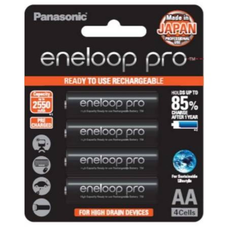 แท้ 100 % ประกันศูนย์ Panasonic eneloop Pro Pack 4 ก้อน AA 2550 mah, AAA 950mAh Original Rechargable Battery ถ่านชาร์จ