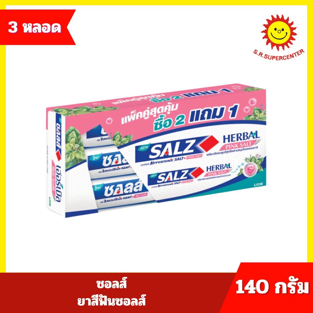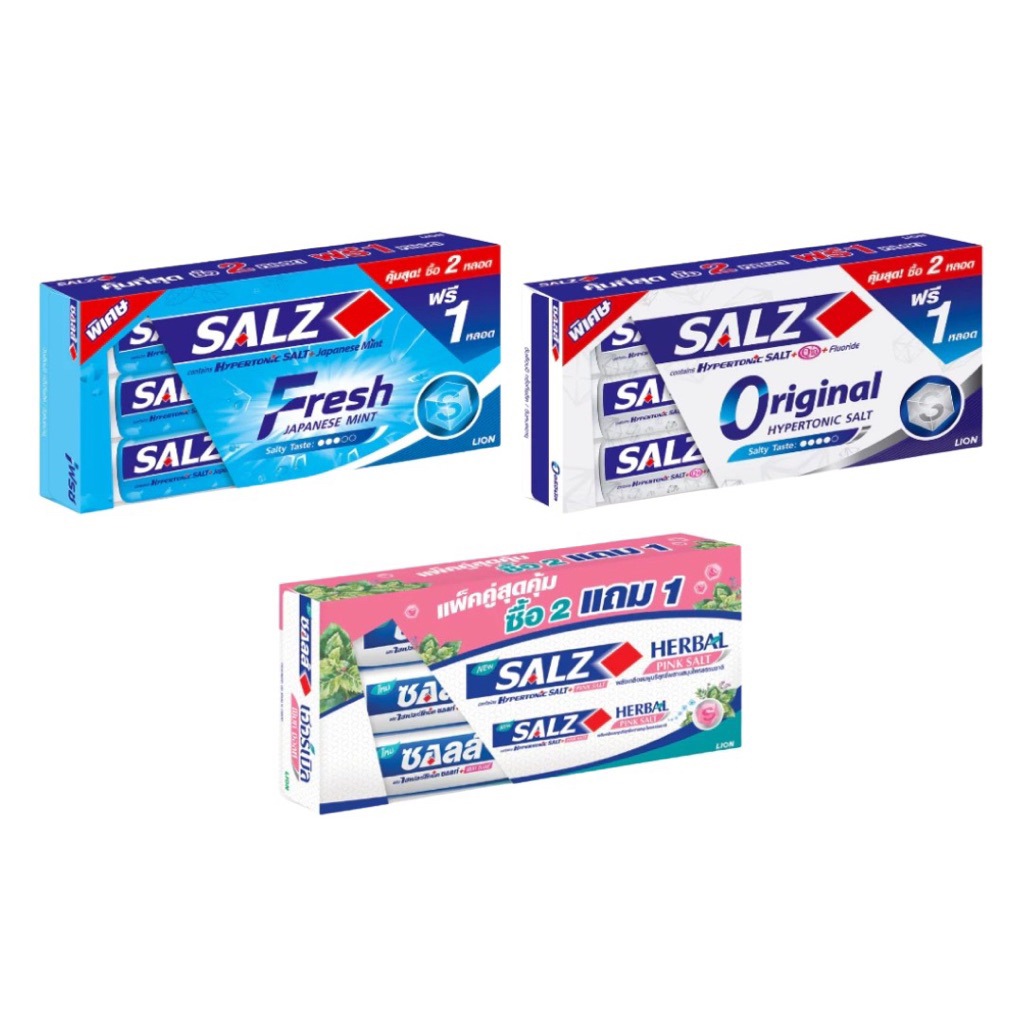 [ แพ็ค 2+1 ] Salz ซอลส์ ยาสีฟันซอลส์ ขนาด 140 กรัม x 3 หลอด (แพ็ค2+1) 3 สูตร