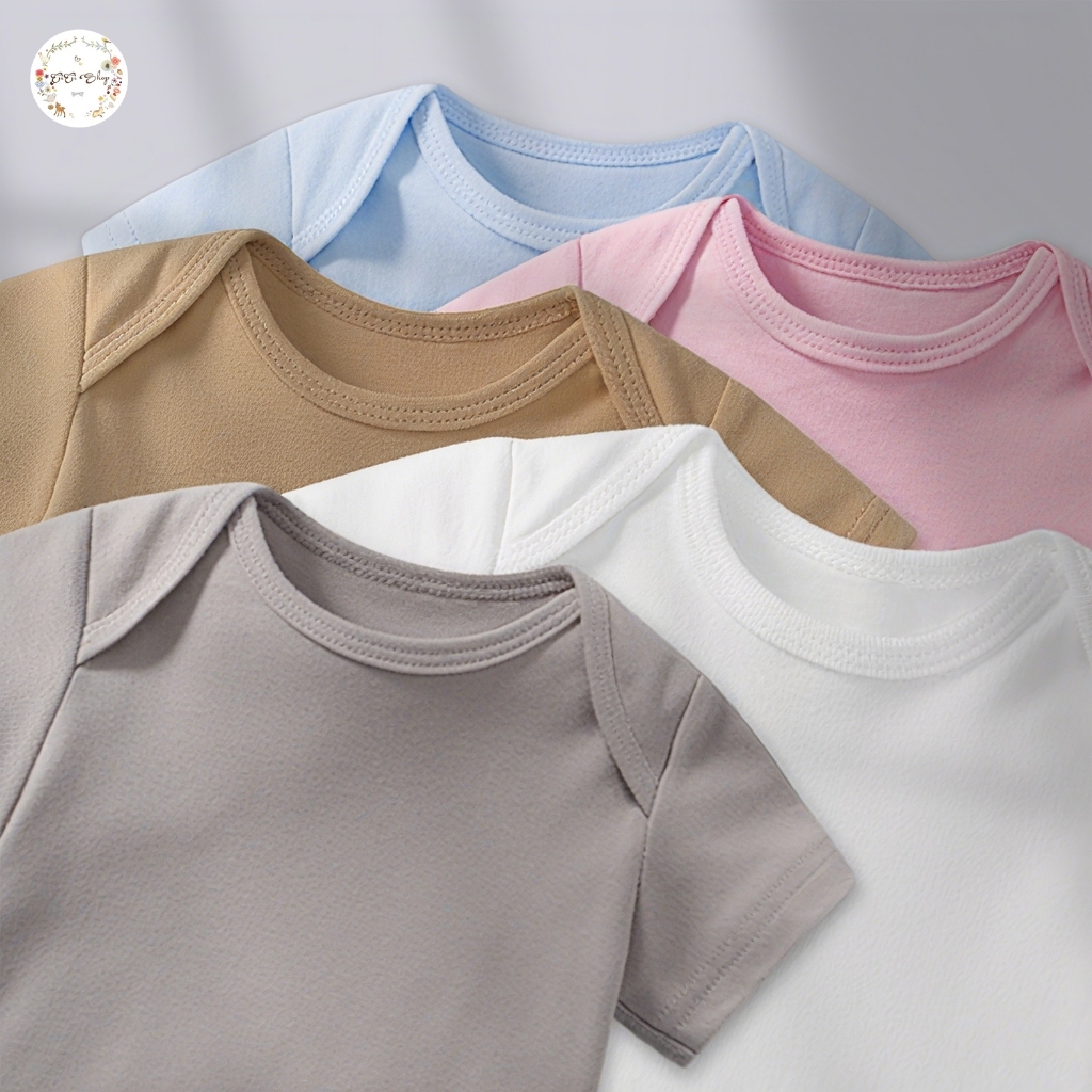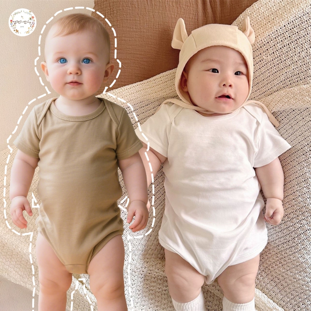 CICI Baby ชุดบอดี้สูทผ้าฝ้ายเรียบๆ สำหรับเด็กแรกเกิดและทารกอายุ 0-12 เดือน
