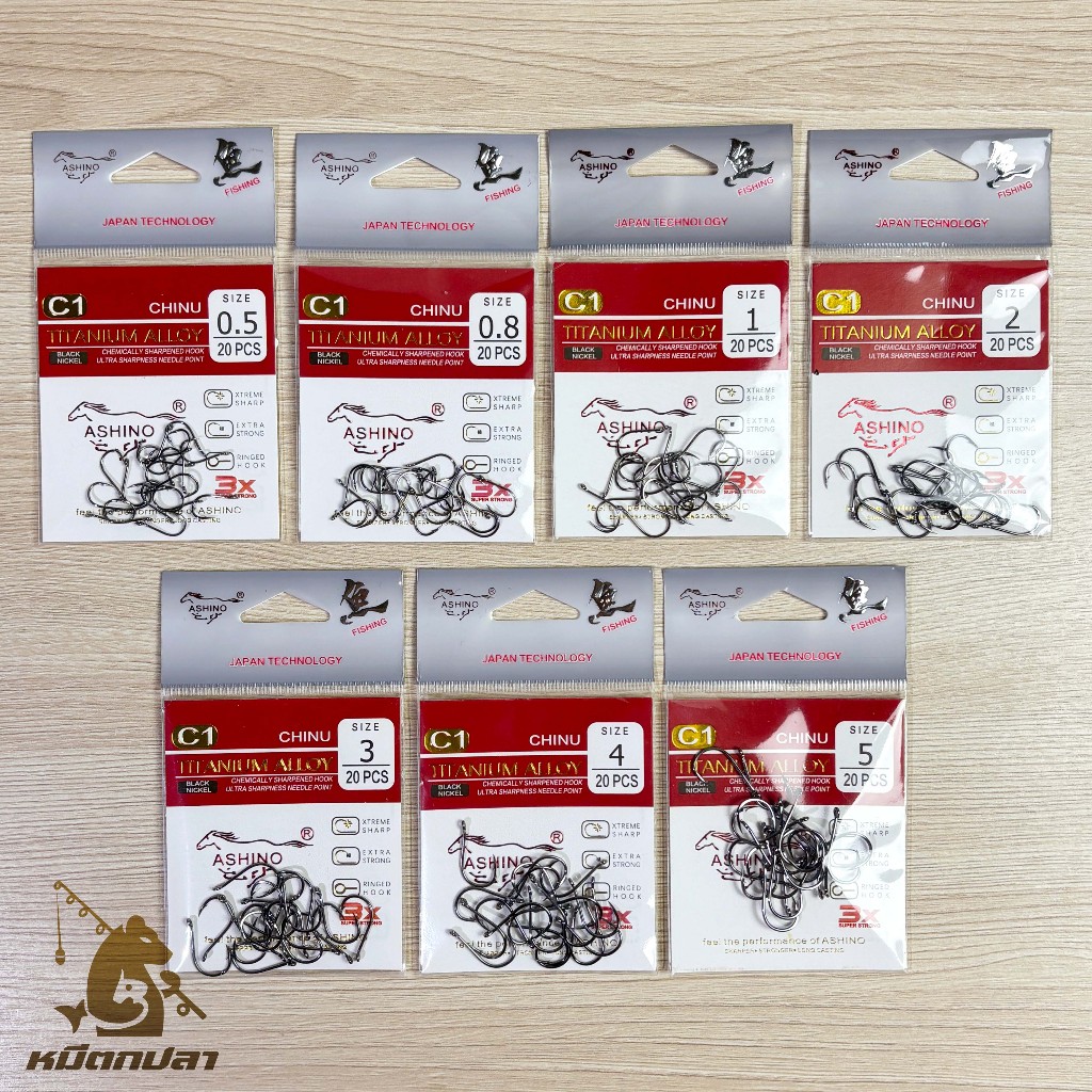 เบ็ดชินุ ASHINO รุ่น C1 ก้นห่วง (ซองละ 20 ตัว) เบ็ดจินุ