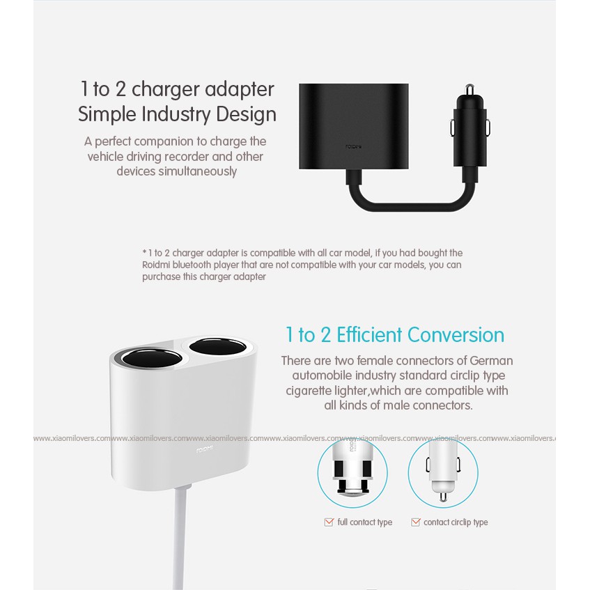 RoidMi Car Dual Cigarette Lighter Splitter - ตัวขยายช่องจุดบุหรี่แบบคู่ (สีขาว)