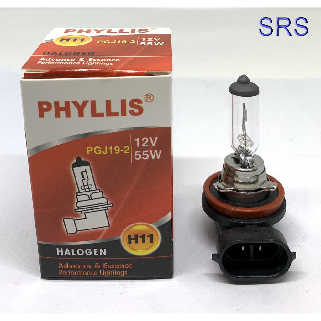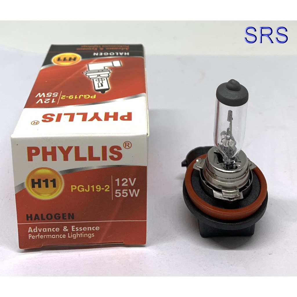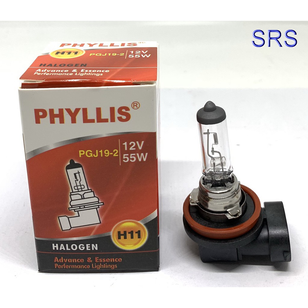 PHYLLIS หลอดไฟหน้ารถยนต์ ขั้ว H11 12V. 55W. ( 2 หลอด )