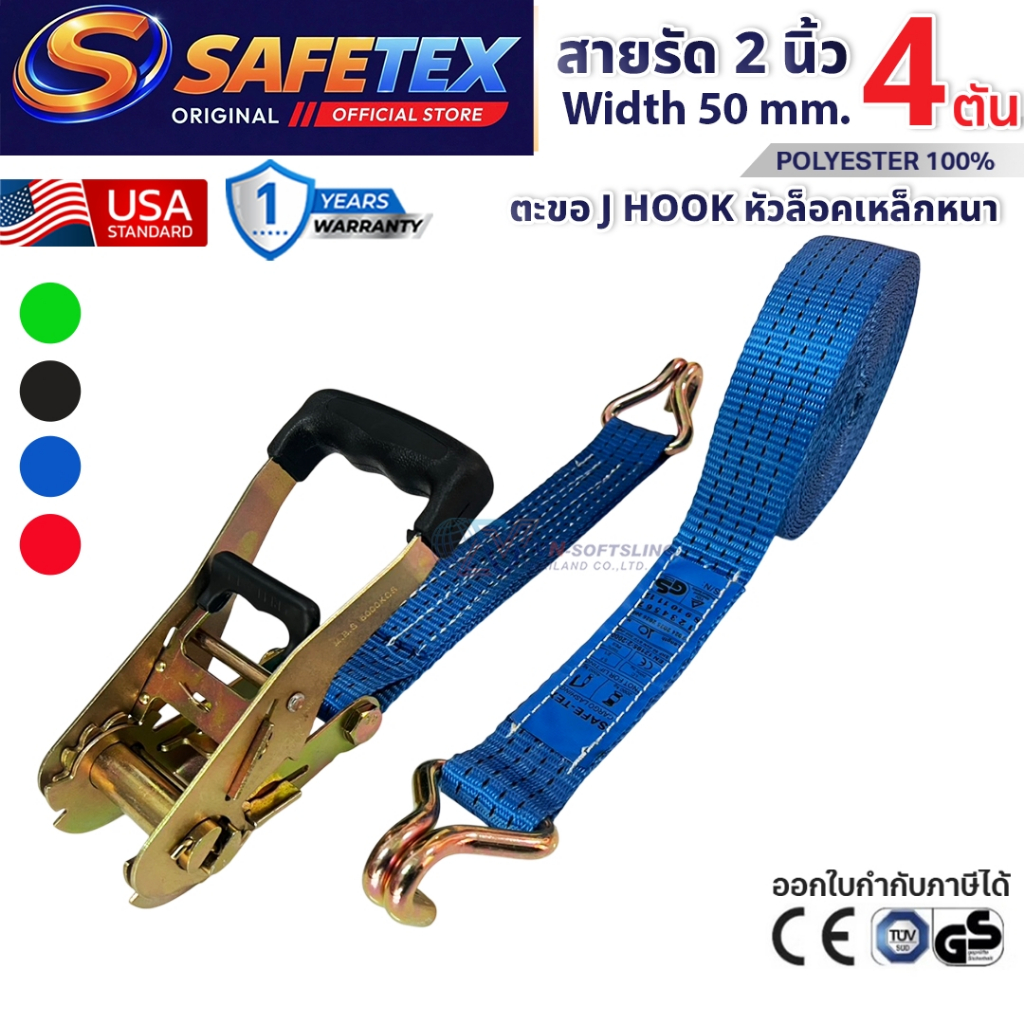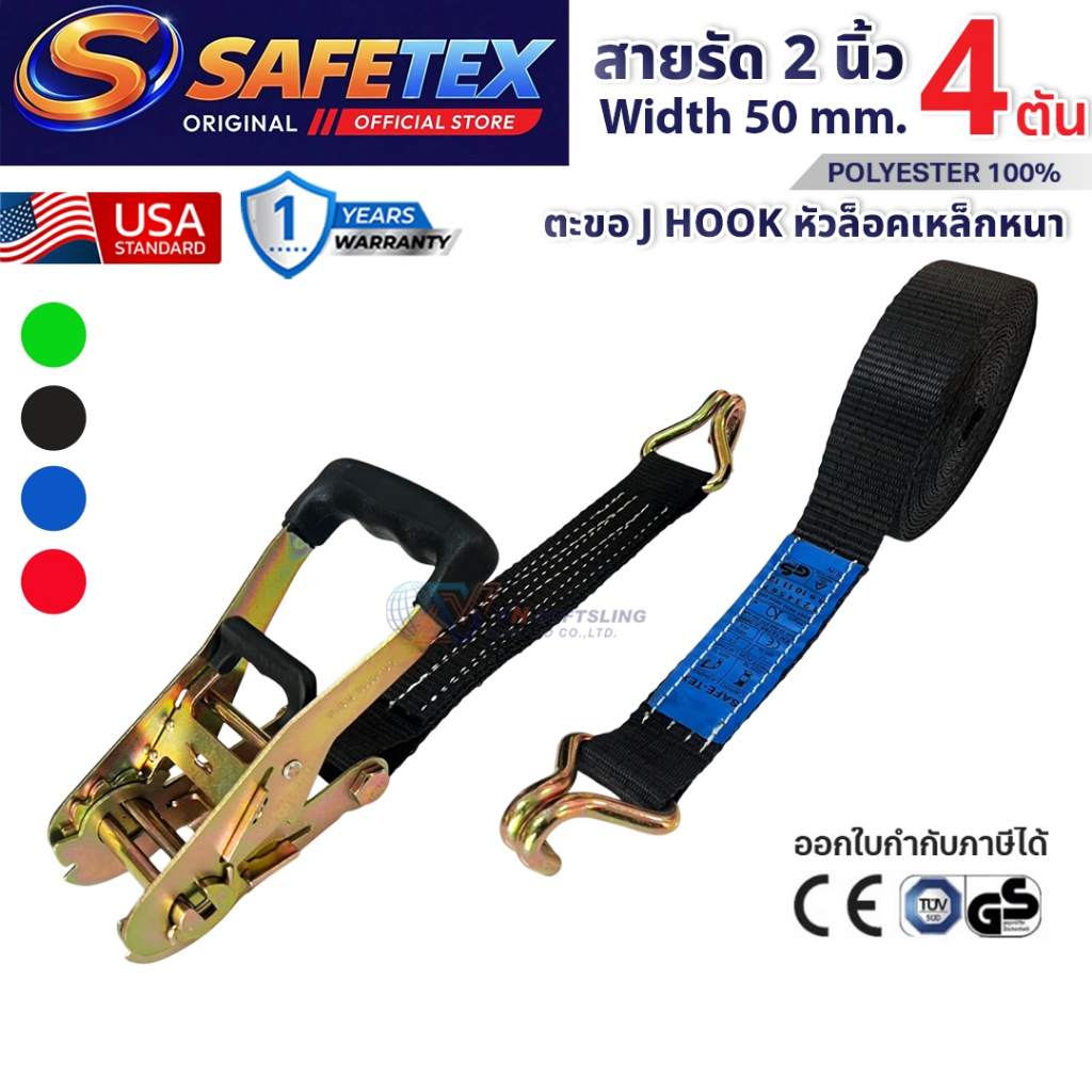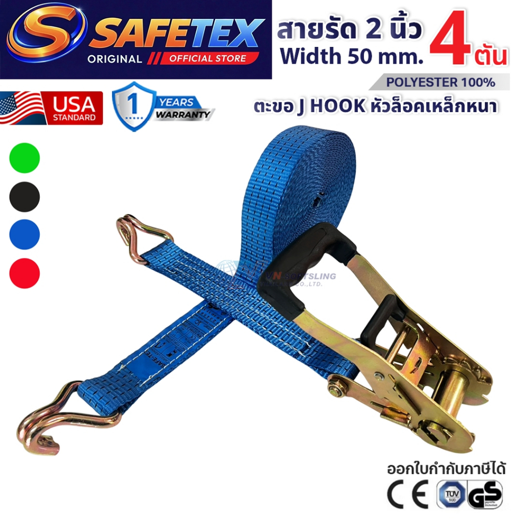 สายรัดก๊อกแก๊ก 2 นิ้ว รุ่น 4 ตัน SAFETEX USA สายรัดรถบรรทุก สายรัดของ สายรัดโพลีเอสเตอร์100%