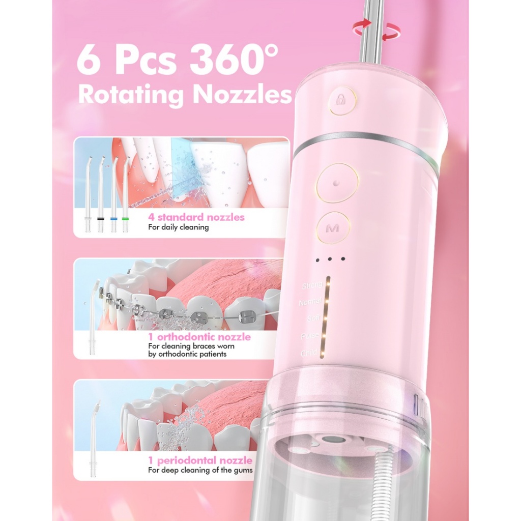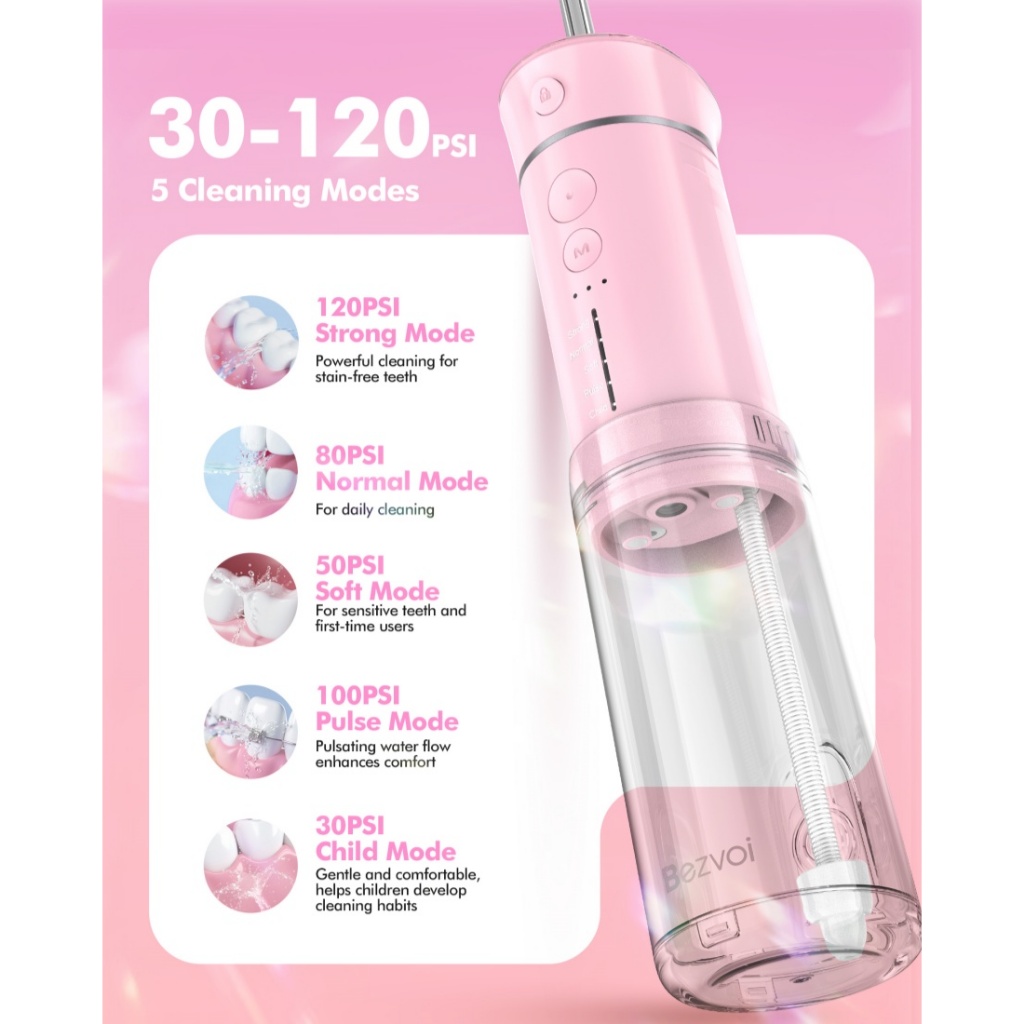 Bezvoi เครื่องล้างฟันไฟฟ้า ipx7 กันน้ํา Y825 Water Flosser ไหมขัดฟันแปรงสีฟันทําความสะอาดฟัน 6 หัวฉีดคู่ครบรอบแฟนของขวัญวันเกิดสีชมพู