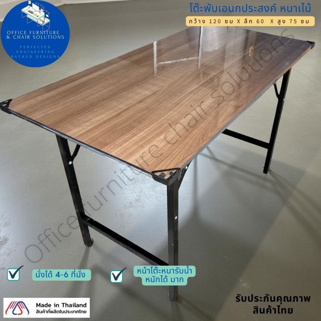 โต๊ะพับอเนกประสงค์ หน้าโฟเมก้า ขาดำ ขนาด 120x60x75 cm.