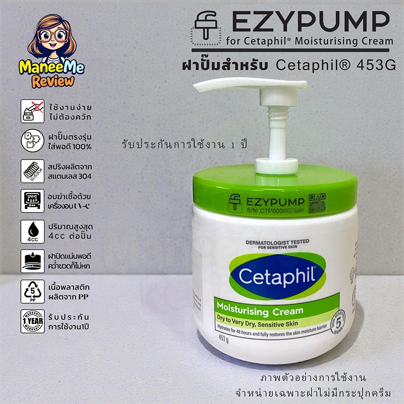 ✅รับประกัน 1 ปี ฝาปั๊ม Cetaphil 453g แบรนด์ EZYPUMP ของแท้100% อบUVC ฆ่าเชื้อ99% เฉพาะฝา หัวปั๊ม