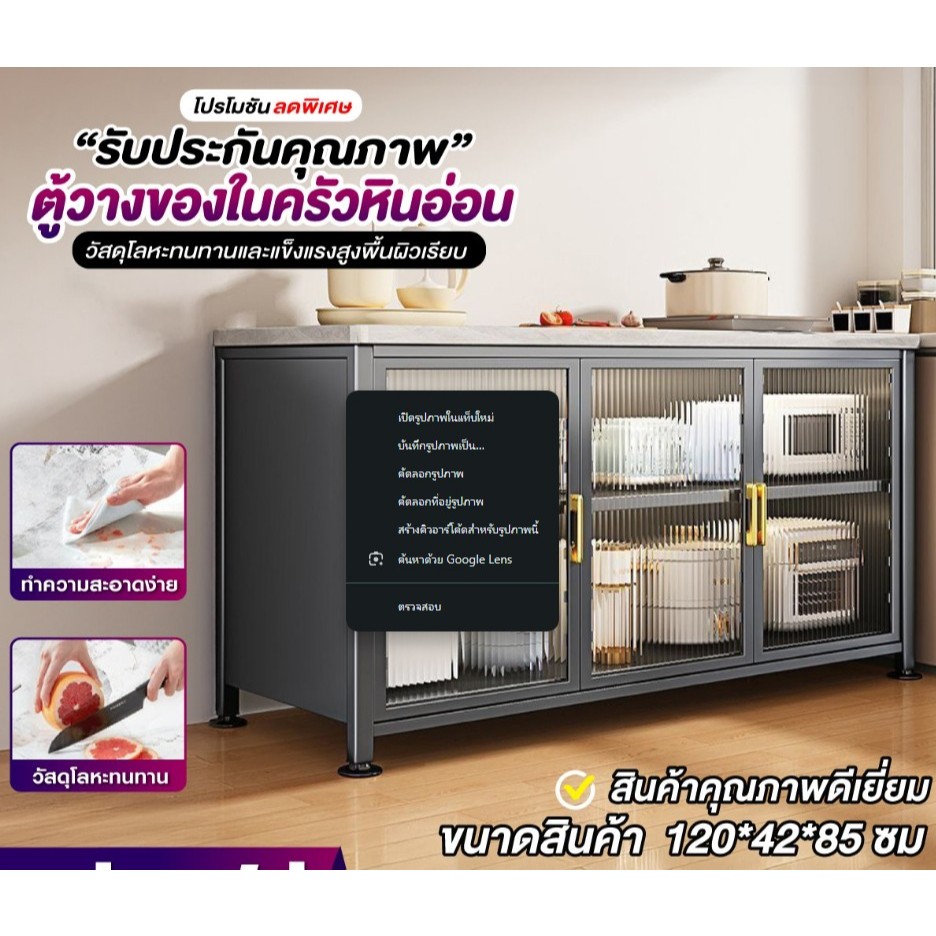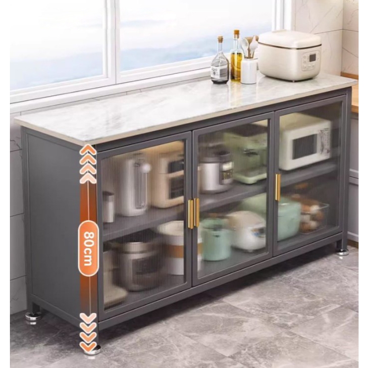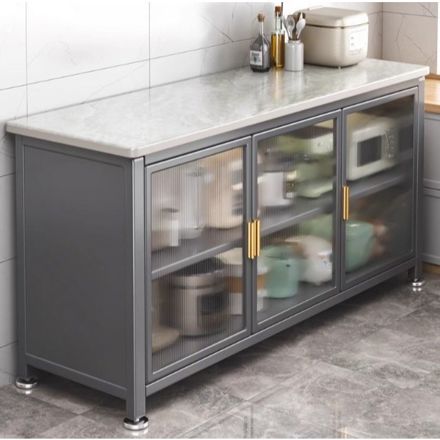 RAREITEM ตู้เก็บของในครัว 3ชั้น 3ประตู ลายหินอ่อน พร้อมล้อเลื่อน