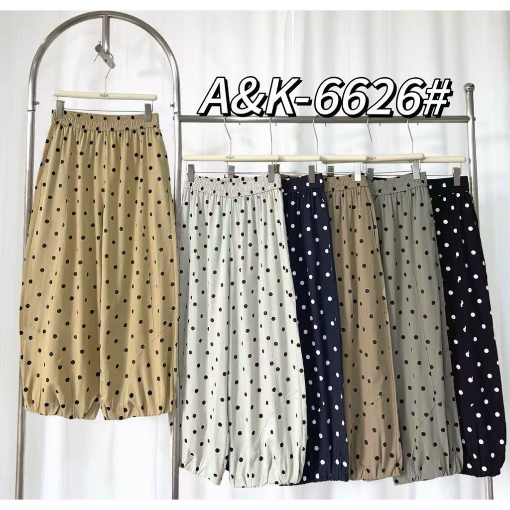 รหัส 6626กางเกงขายาวทรงจินนี่ขาจั๊มลายจุดป้ายA&K
