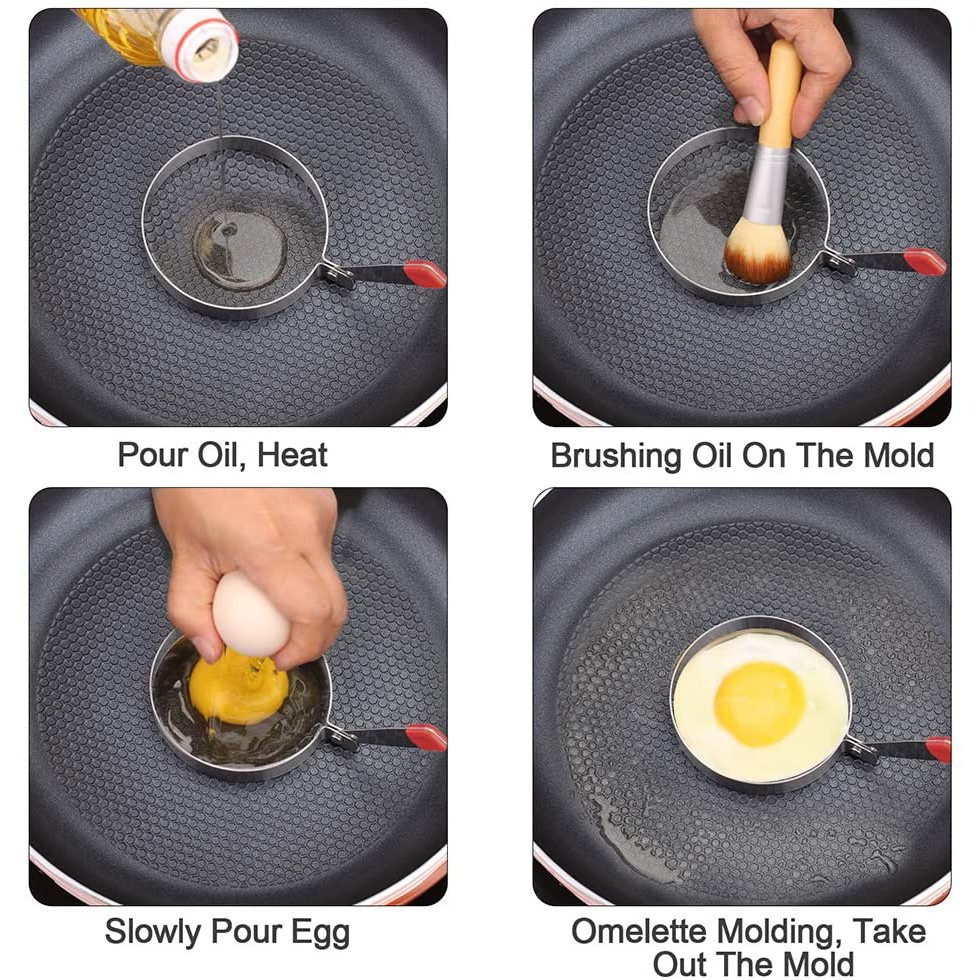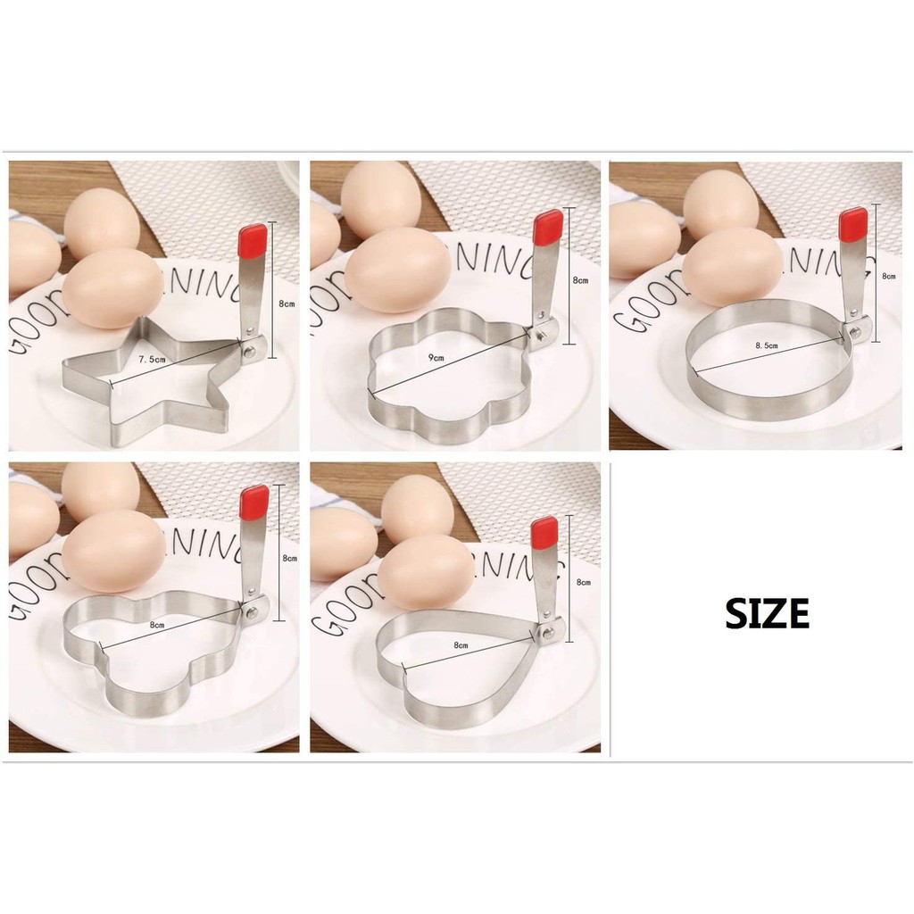 HOMEBERG 5ชิ้น สแตนเลส304 พิมพ์ไข่ดาว แม่พิมพ์ทอดไข่ แม่พิมพ์สแตนเลส เซ็ตแม่พิมพ์ทอดไข่ดาว สำหรับทำไข่ดาว สีแดง