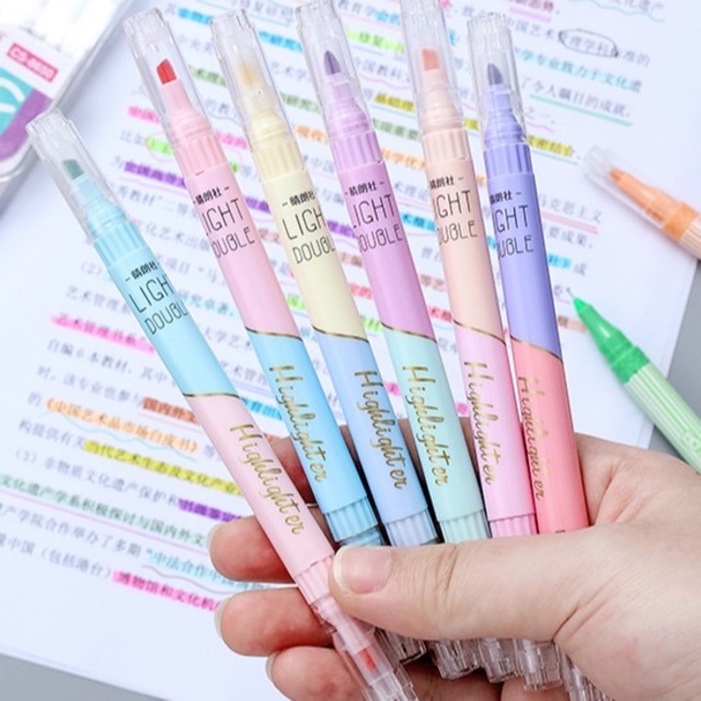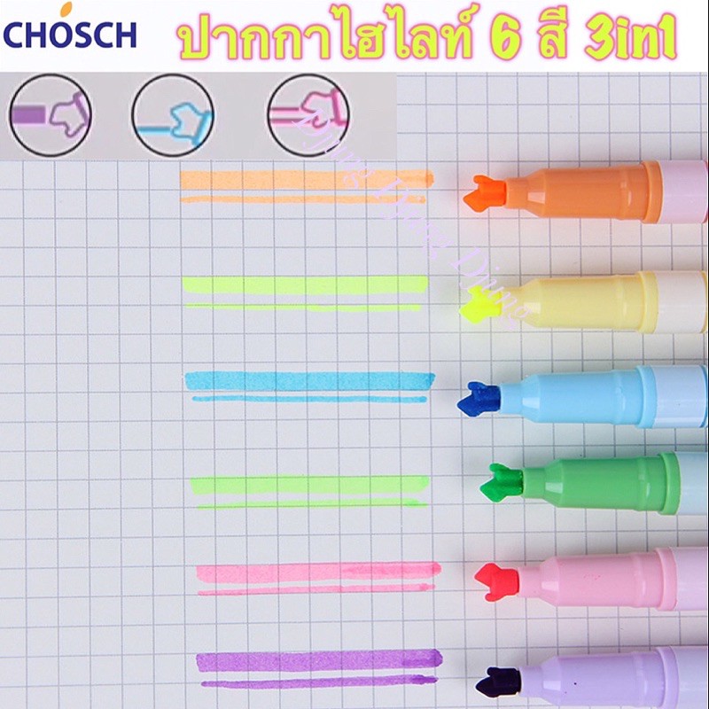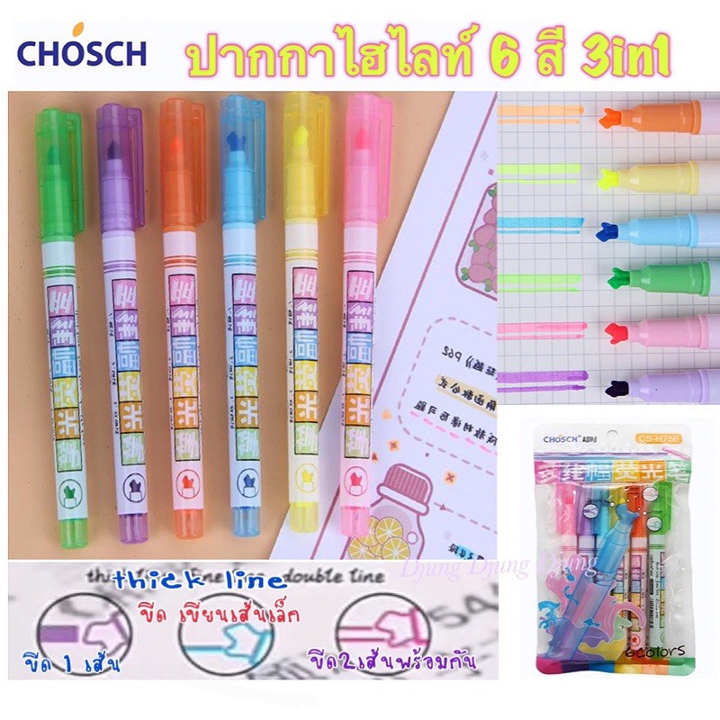 Chosch ปากกาไฮไลท์ 2 หัว 6 ด้าม 12 สี สีพาสเทล / ปากกาเน้นข้อความ 3 ด้าม 6 สี Higlighter Light Double ไฮไลท์ 2 สีk