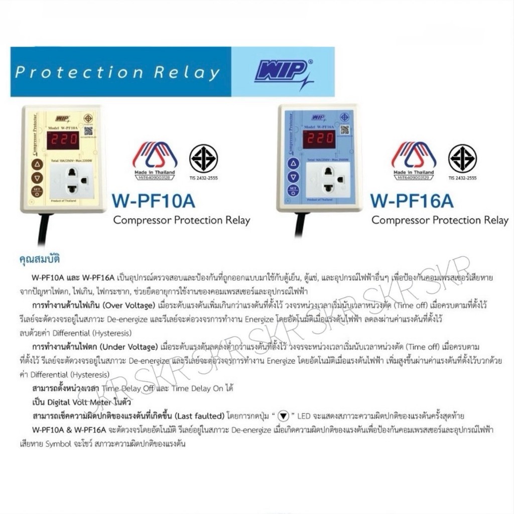 WIP ปลั๊กตู้แช่ ป้องกันไฟตก-ไฟเกิน ขนาด 16A W-PF16A Compressor Protector ตู้แช่ กันไฟตก ไฟตกตัด จัดส่งKerry