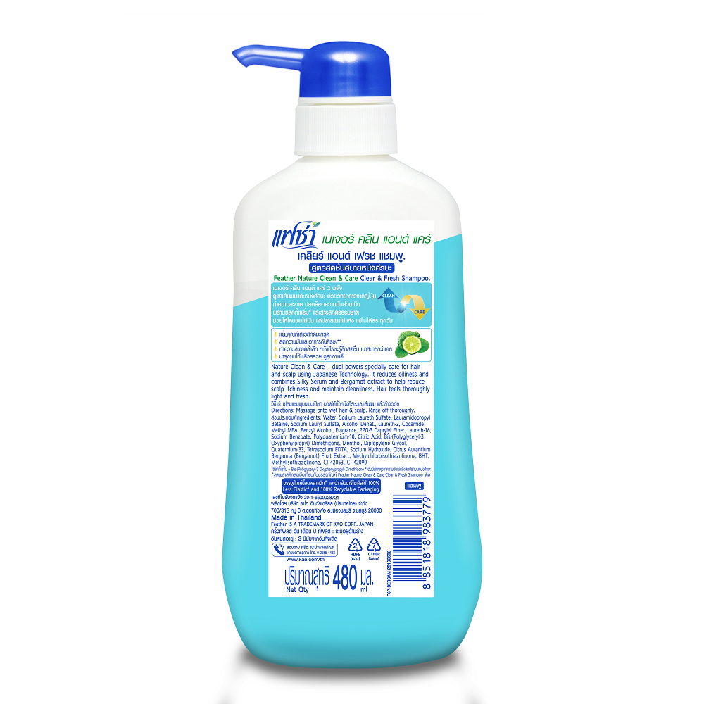 แฟซ่า สดชื่นสบายหนังศีรษะ แชมพู 480มล.Feather Nature Clean and Care Clear&Fresh Shampoo 480ml.