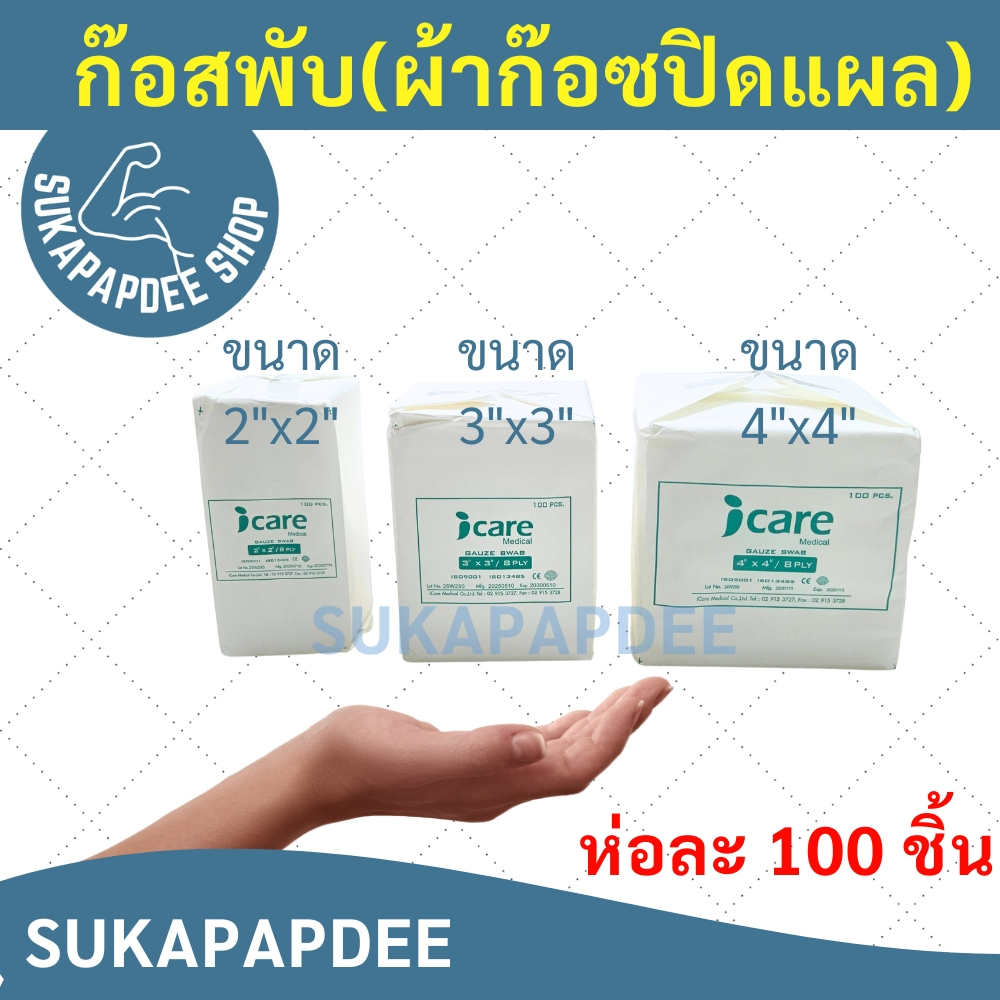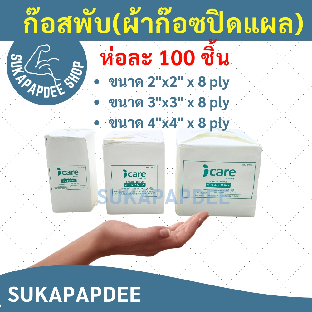 ก๊อซพับ (ผ้าก๊อซปิดแผล) ขนาด 2"x2" / 3"x3" / 4x4 นิ้ว x 8 PLY (ห่อละ 100 ชิ้น) ยี่ห้อ ICARE