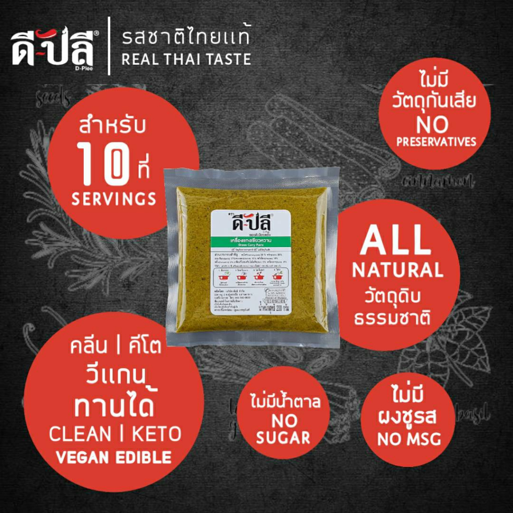 ดีปลี พริกแกงเขียวหวาน เครื่องแกงเขียวหวาน [ คีโต คลีน vegan ] พริกแกงใต้ 200g พริกแกง เครื่องแกง เครื่องแกงใต้ keto
