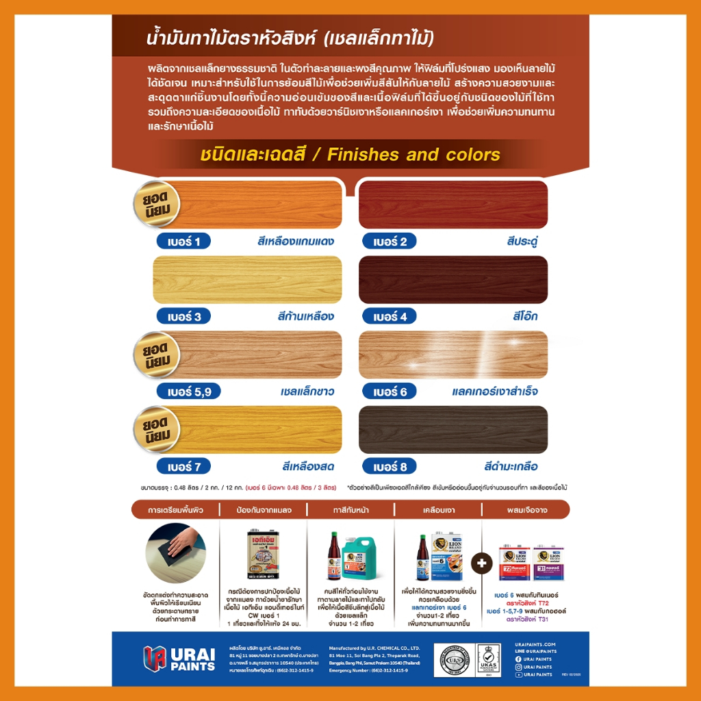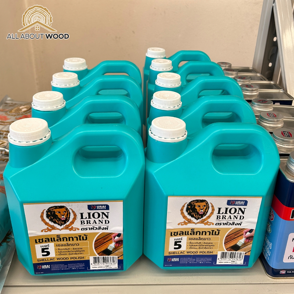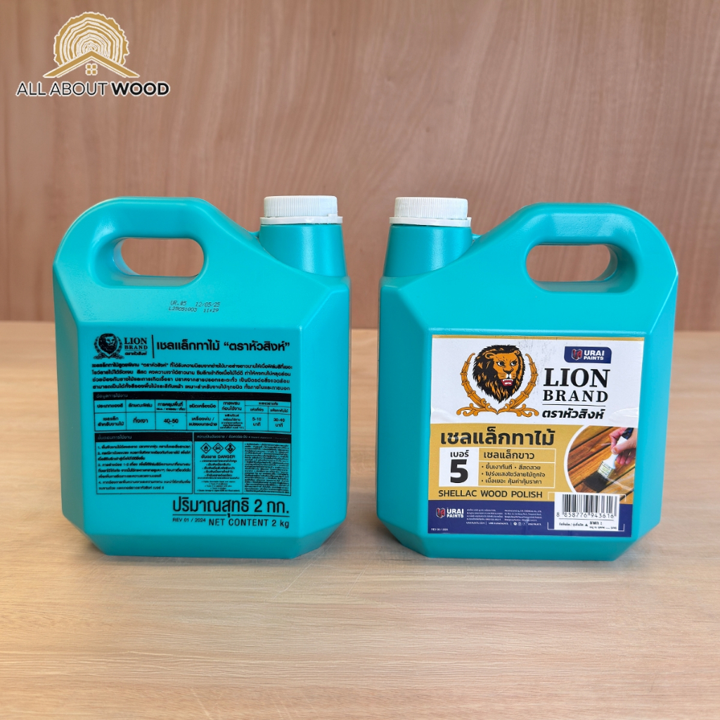 แชลแล็คขาวทาไม้ No.5 ตรา หัวสิงห์ น้ำมันทาไม้ แลคเกอร์ไม้ ขนาด แกลลอน 2 กก. | All About Wood