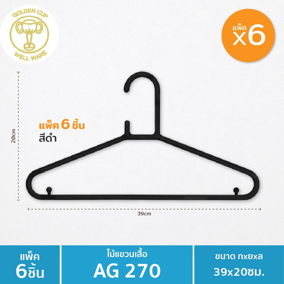 GOLDEN CUP ถูกที่สุด!! ไม้แขวนเสื้อสีขาว/ดำ 1 แพ็ค x6 ชิ้น รุ่น AG270