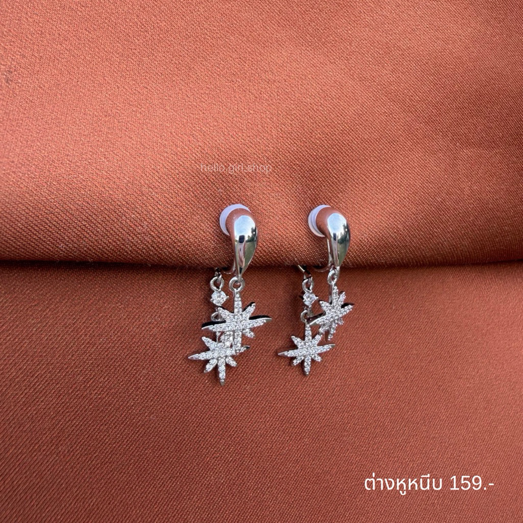 ( ต่างหูหนีบ ขดลวด ) ต่างหูดาวเพชร สีเงิน