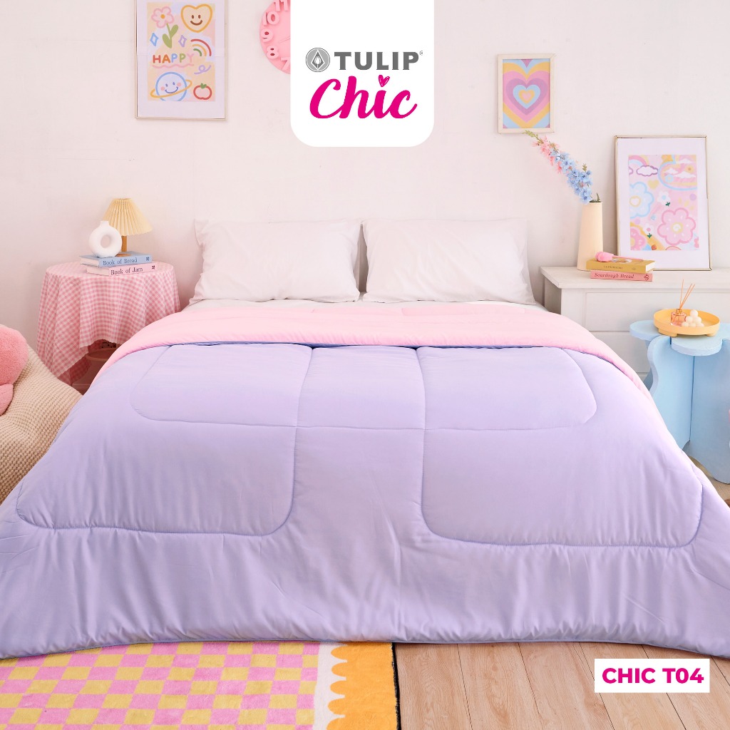 TULIP CHIC ผ้าห่มนวม ทูโทน สีม่วง-ชมพู สีพื้นพาสเทล CHIC T04 ผ้านวมหนานุ่ม ห่มสบาย สไตล์มินิมอล