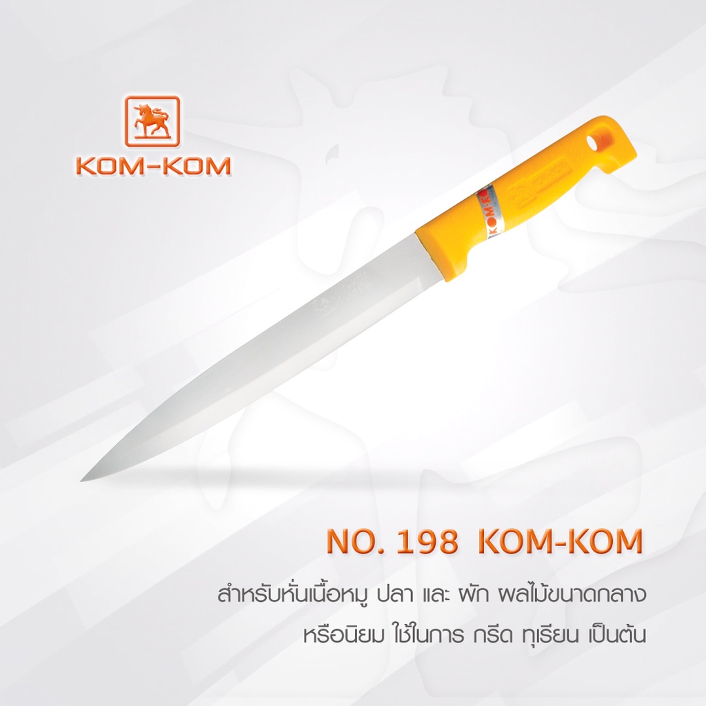 KOMKOM 198 มีดเนื้อ ด้ามพลาสติกสีเหลืองปลายแหลม 8 นิ้ว มีดคมคม