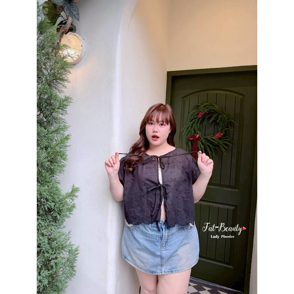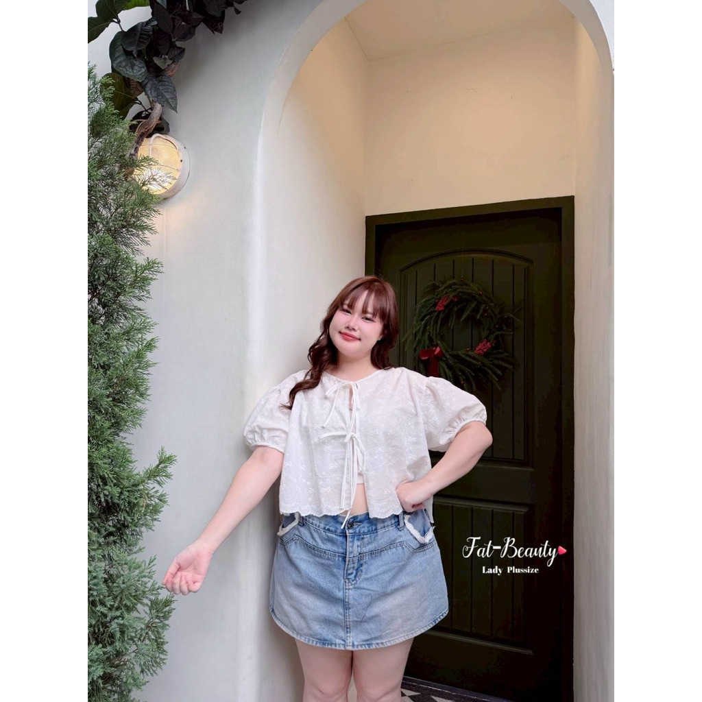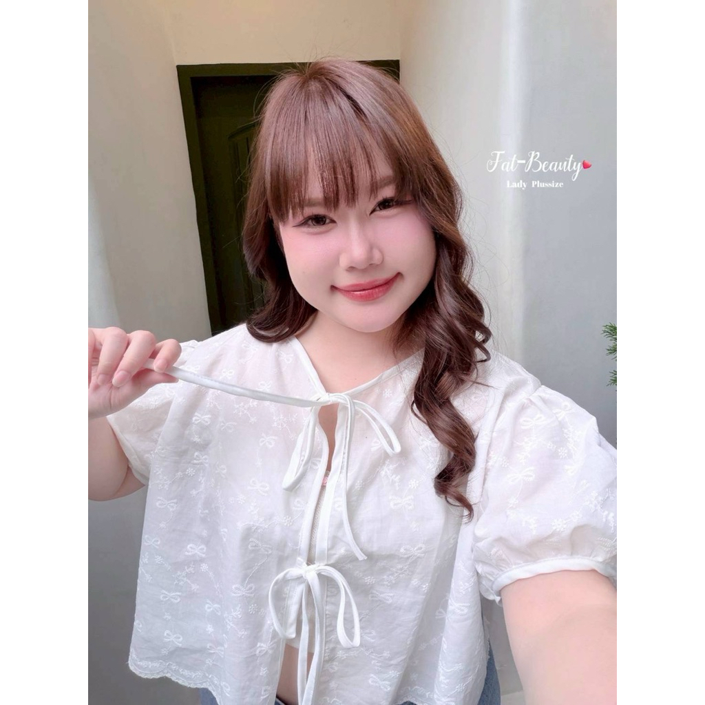 Belen Top 🤍🧁🎀🪞🫧 เสื้อแขนตุ๊กตา ผ้าลูกไม้เนื้อนุ่มพิมพ์ลายโบว์ ช่วงหน้าอกผูกโบว์หวานมากๆ ใส่สบายสาวอวบ