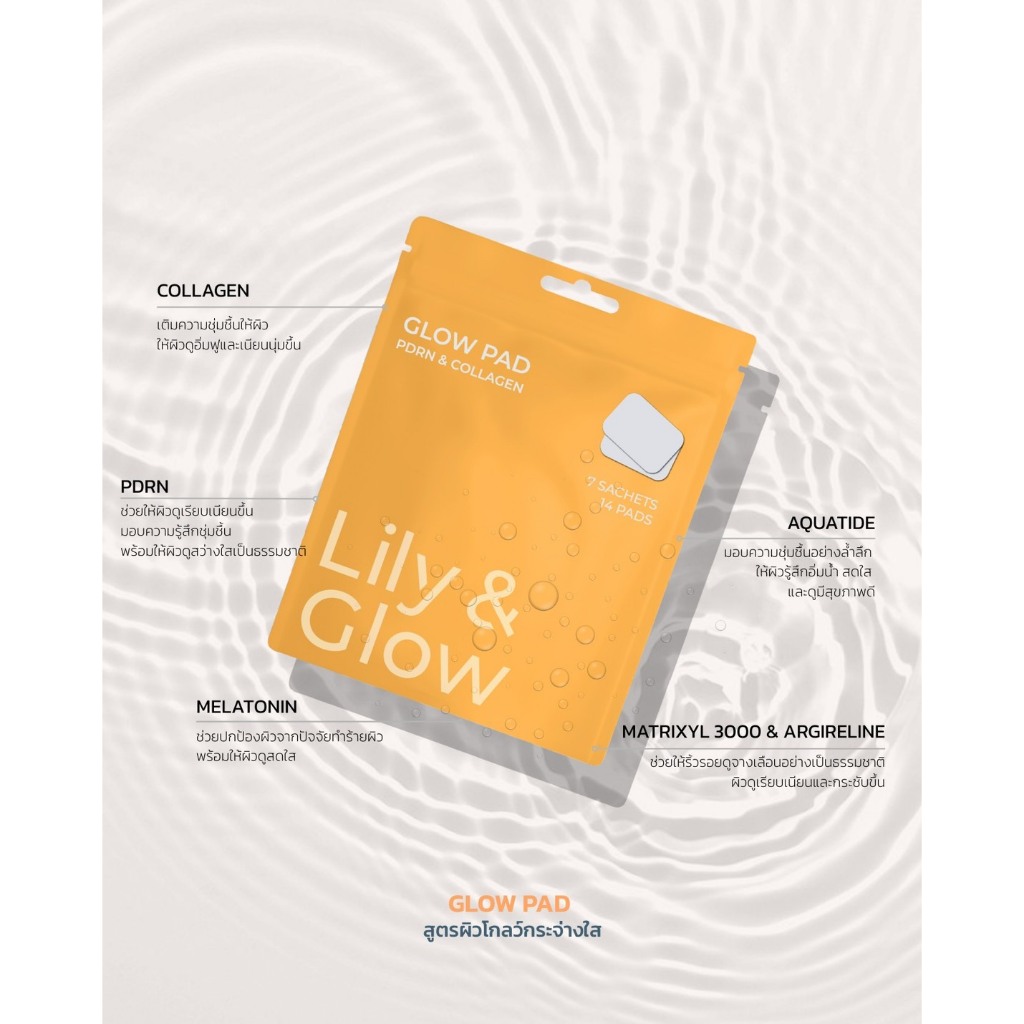 LILY & GLOW, Glow Toner Pad โทนเนอร์แพด เซรั่มแพด ช่วยให้เมคอัพติดทน ผิวอิ่มฟู ผิวโกลว์แบบสุขภาพดี (30 ซอง 60 แผ่น)