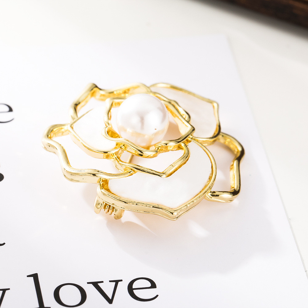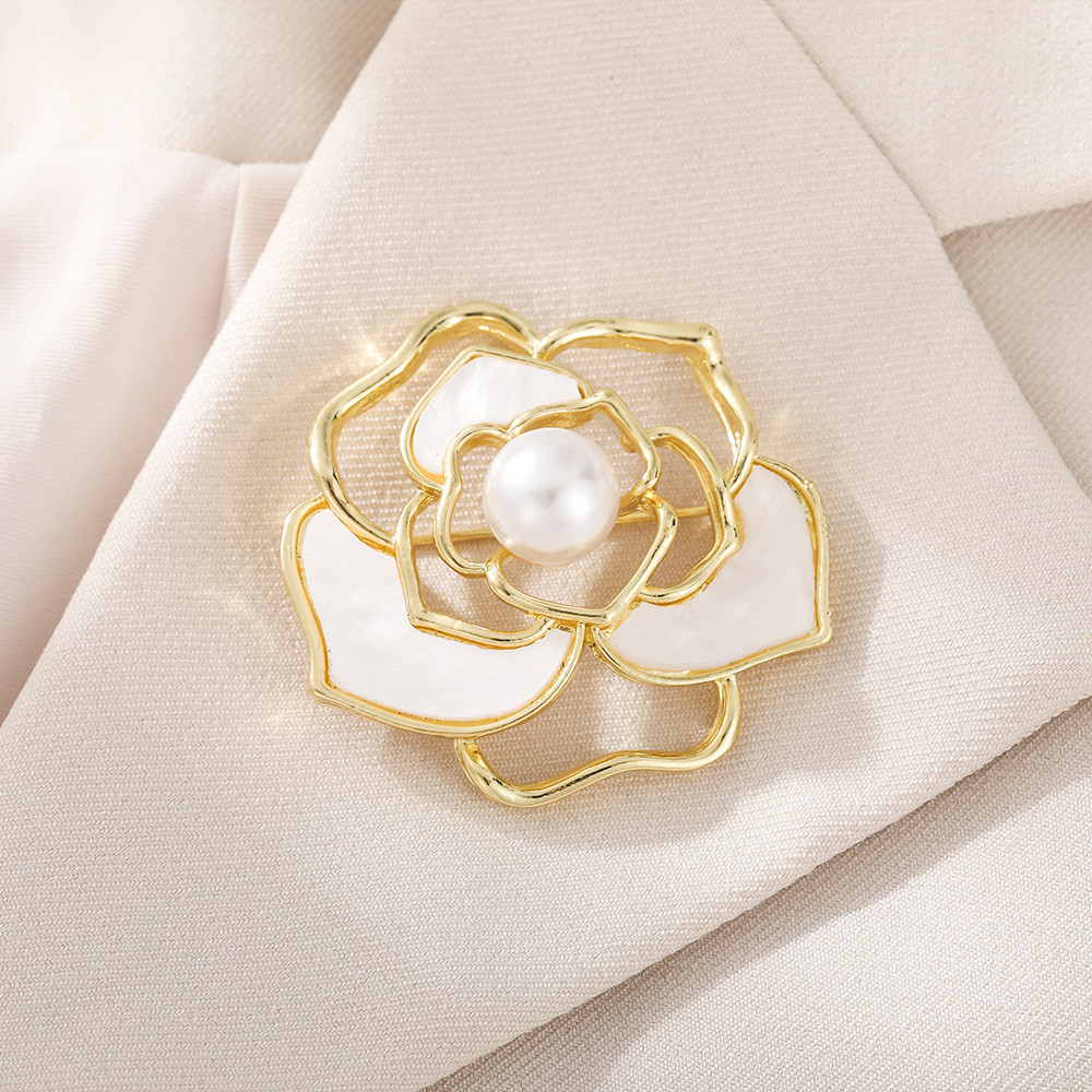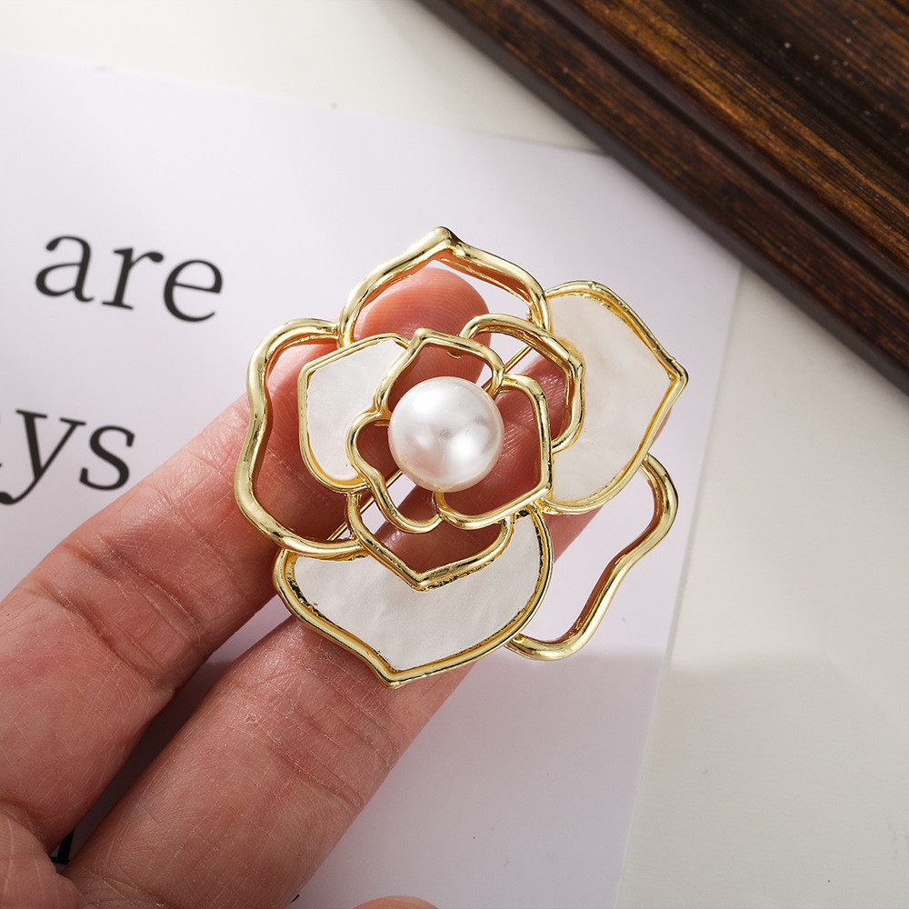 เข็มกลัดติดหน้าอกไข่มุกดอกคามิเลียไข่มุกหรูหราสไตล์ชนเผ่าเข็มกลัดฤดูร้อนชุดสูทระดับไฮเอนด์