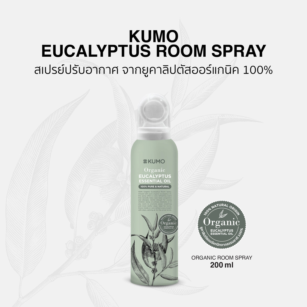 (Exp.11/2027) KUMO EUCALYPTUS ROOM SPRAY 200ml. 1 ขวด/ 3 ขวด สเปรย์ปรับอากาศ ช่วยไล่ยุ่ง และช่วยให้หลับสบาย