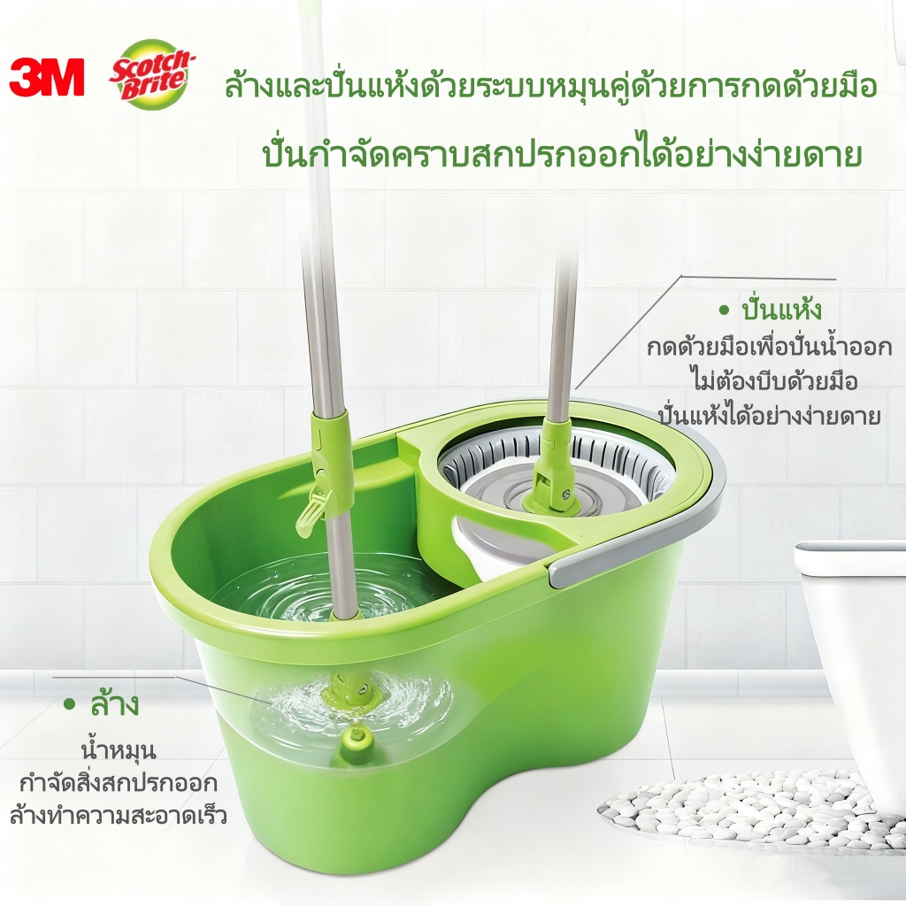 ส่งฟรี 3M Scotch-Brite Eco T7 mop เวอร์ชันใหม่ พร้อมไม้ถูพื้นไมโครไฟเบอร์ ถังปั่น ถังม็อบ ไม้ถูพื้นสำหรับใช้ในบ้าน