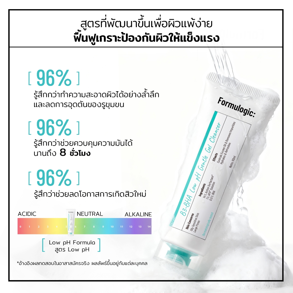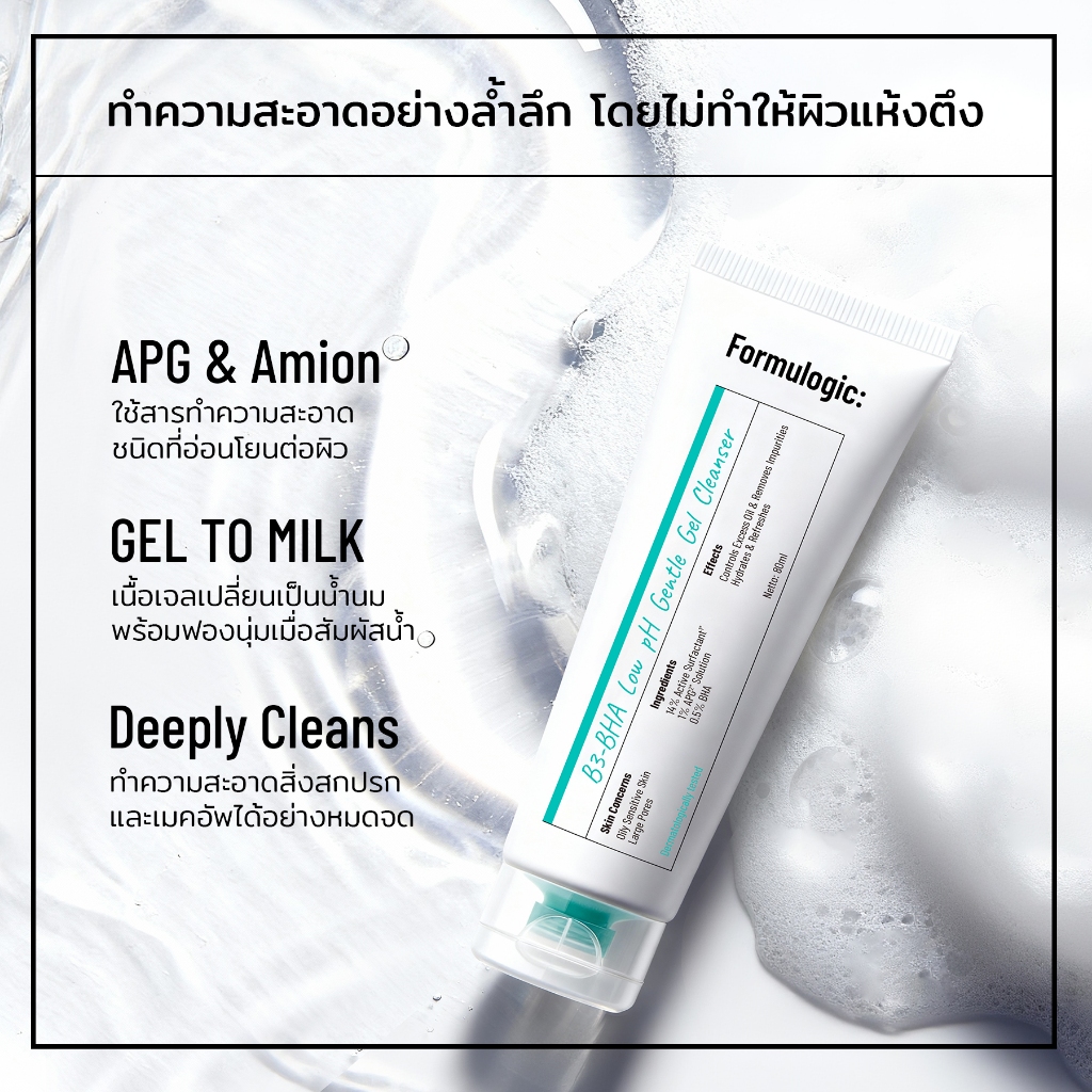 Formulogic: B3-BHA Low pH Gentle Gel Cleanser เจลล้างหน้าสูตรอ่อนโยน สำหรับการดูแลผิว ให้ผิวรู้สึกสะอาด และชุ่มชื้น