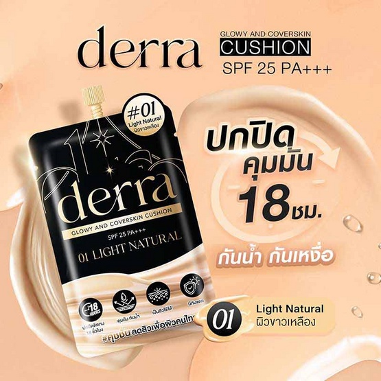 (ซอง) เดอร์ร่า คุชชั่น Derra glowy & coverskin SPF25 PA+++ ซอง 4 g.