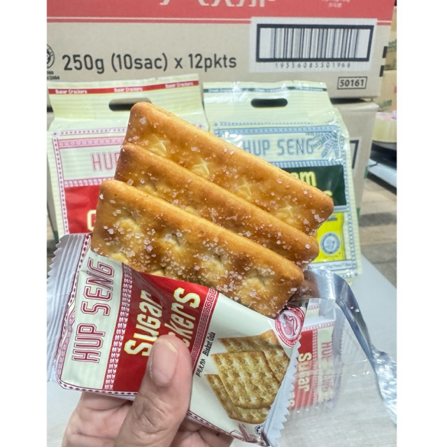 (ยกลัง 12แพ็ค)ขนมปังมาเล ขนมปังกรอบ HUP SENG เครกเกอร์ ขนาด225/250กรัม(รุ่นแยกซองใน)
