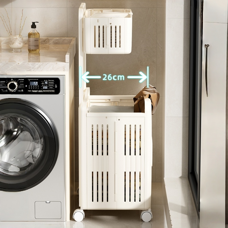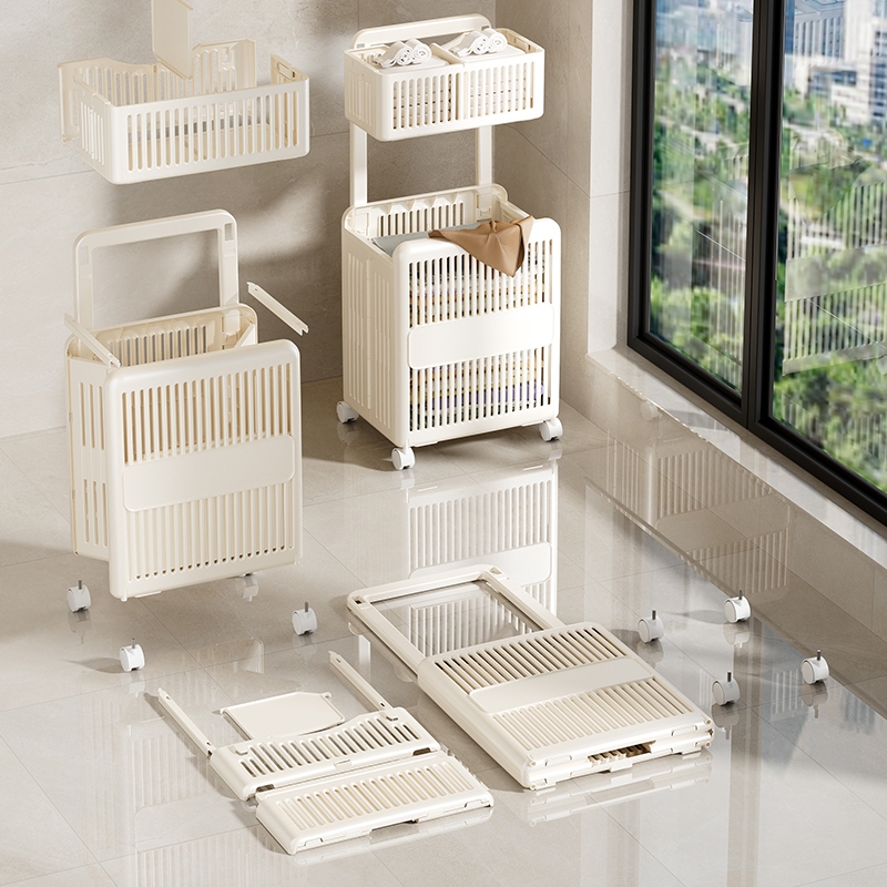 HOTUS ตะกร้าซักผ้าแบบพับได้ ตะกร้าพลาสติกพร้อมล้อ หลายชั้น ที่เก็บข้อมูลอเนกประสงค์ความจุขนาดใหญ่ ตะกร้าผ้า 2ชั้น